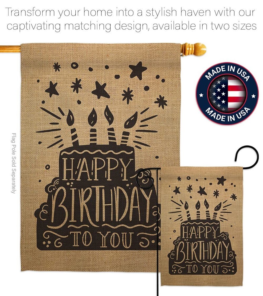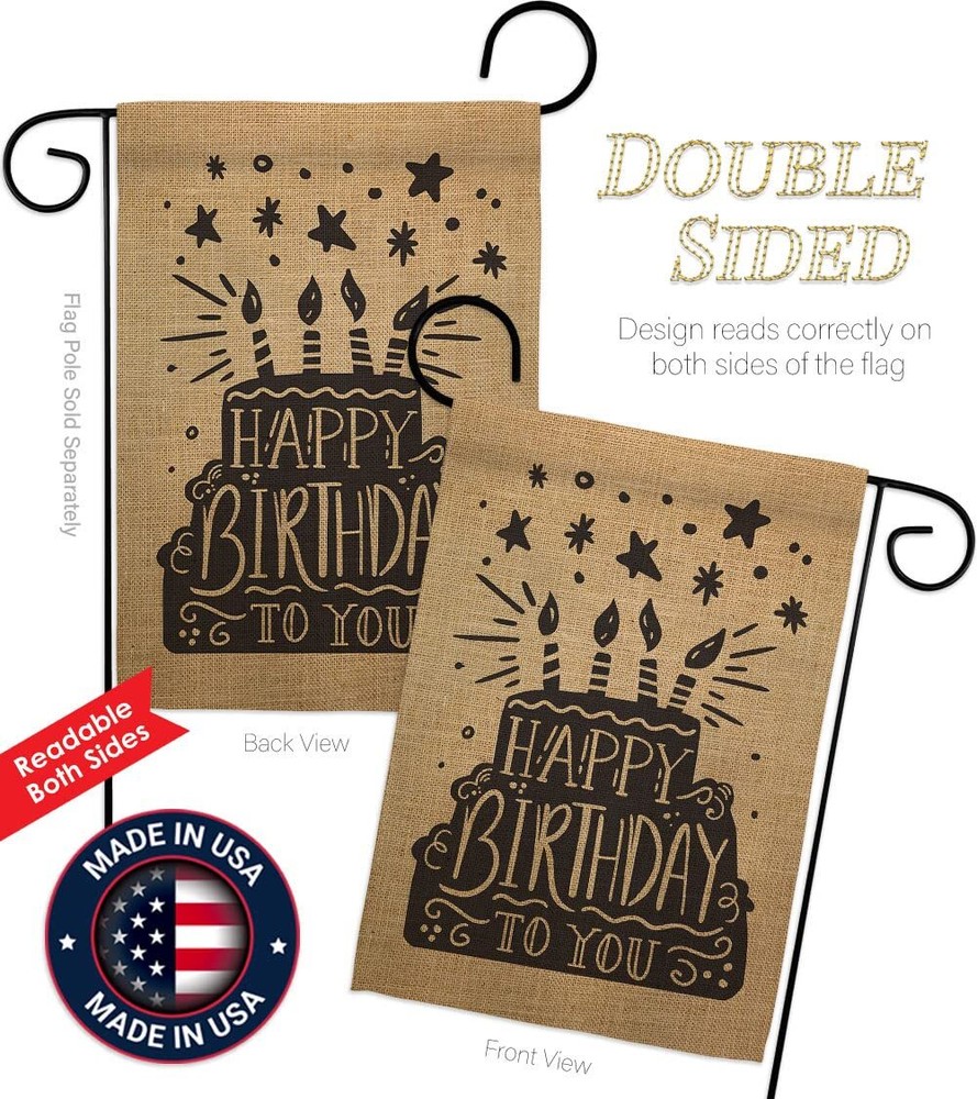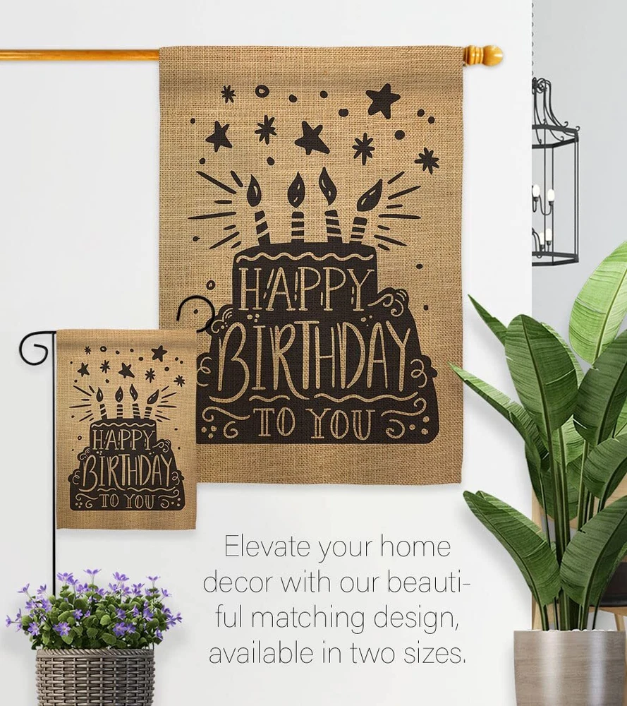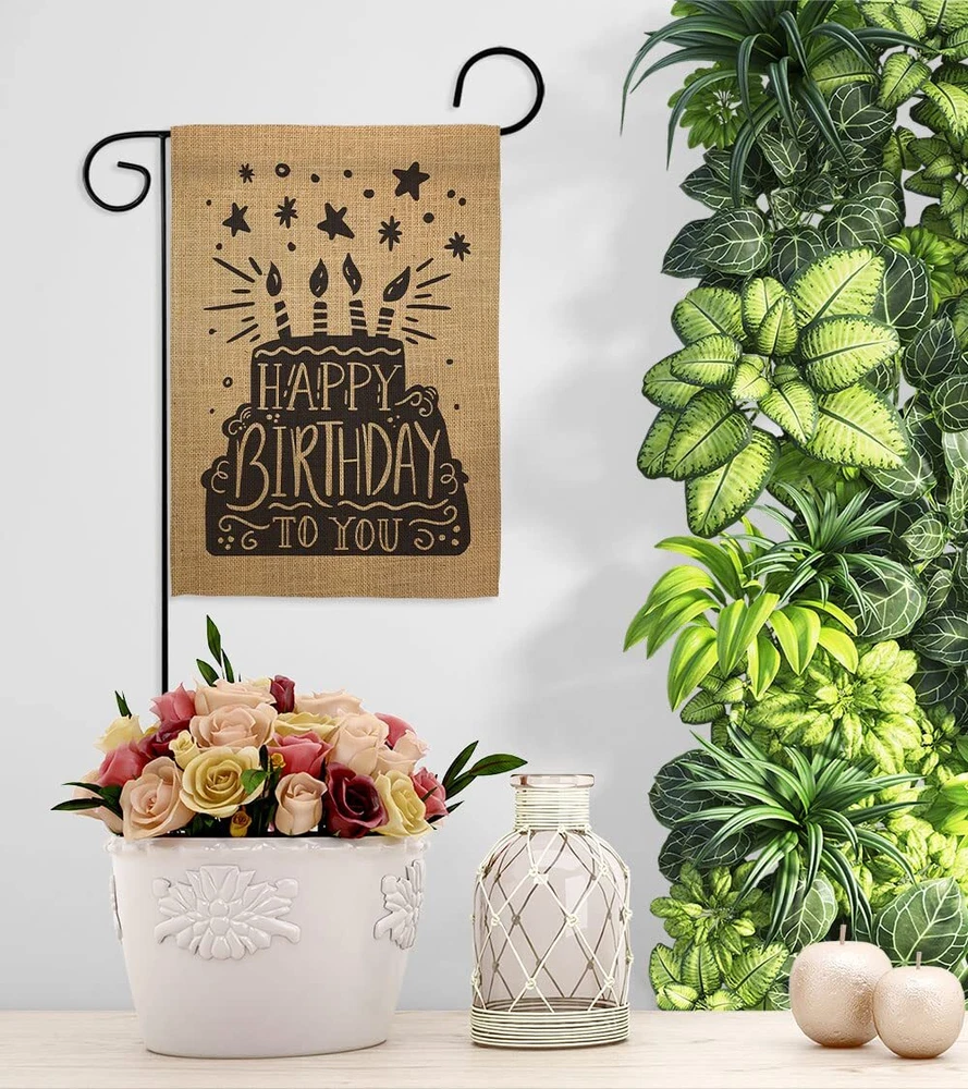 Happy Birthday Garden Flag Set with Stand Cake Gift for Celebrations