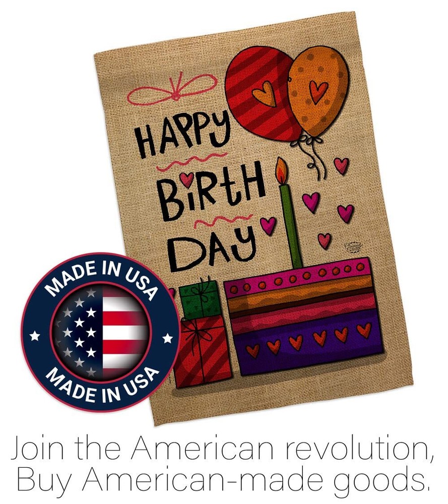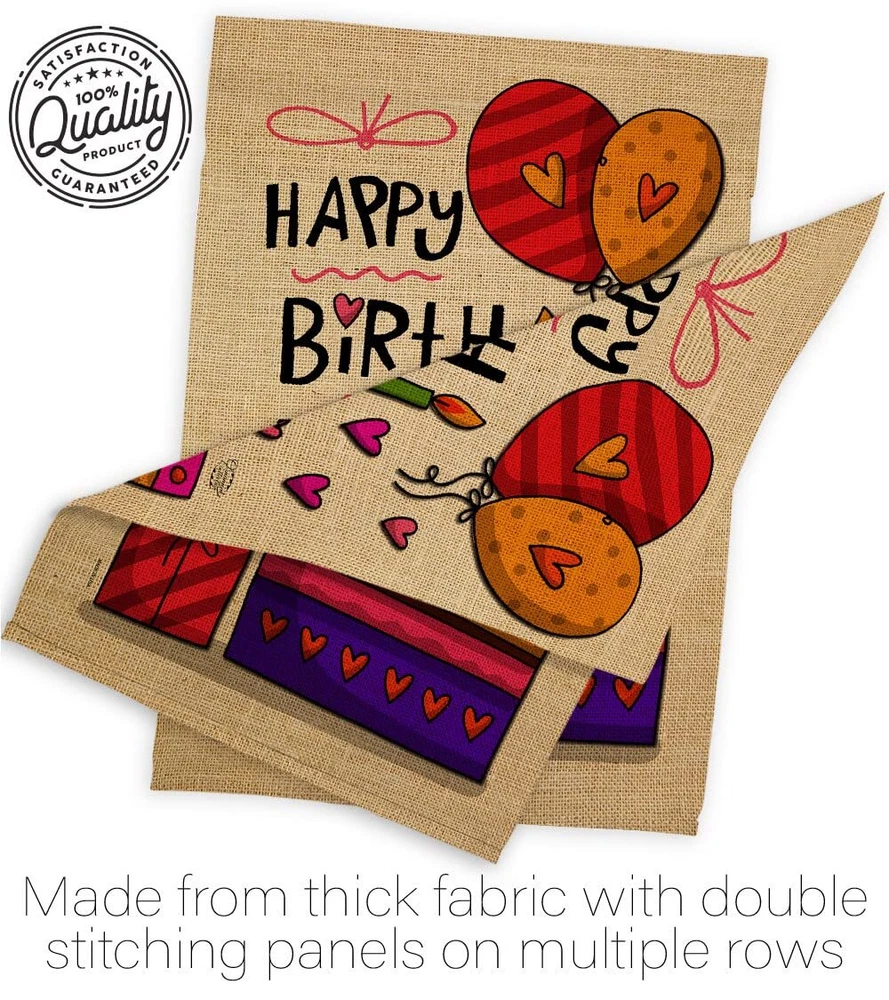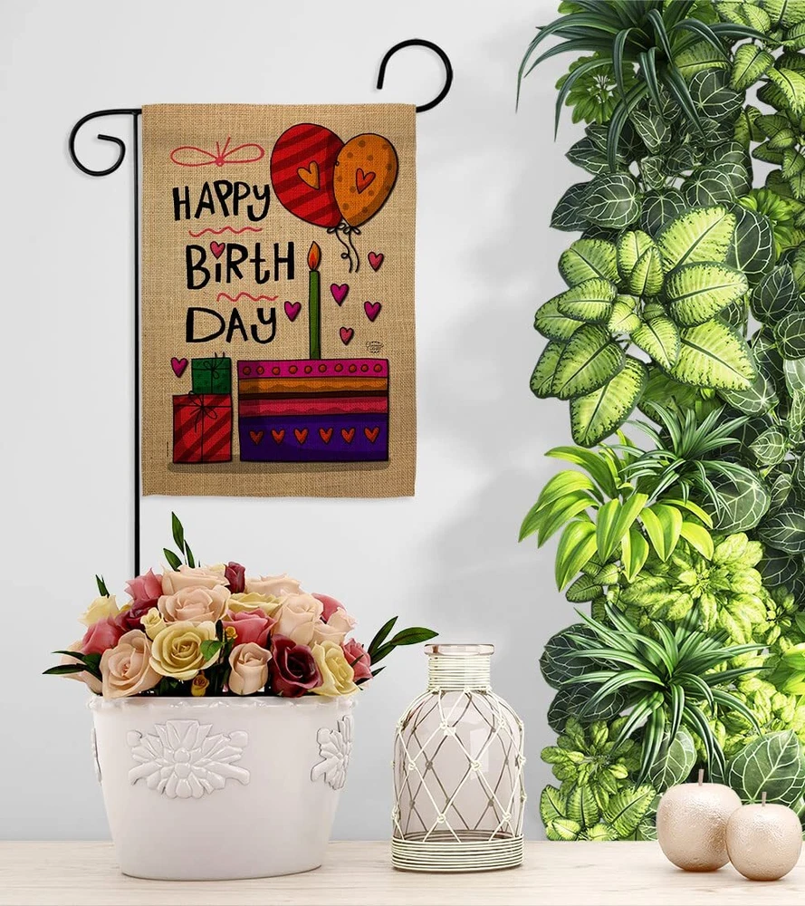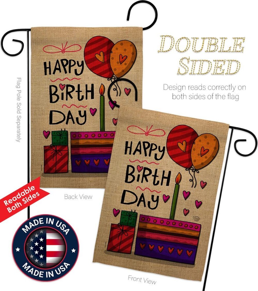 Happy Birthday Garden Flag with Wood Dowel – Celebration Cake Gift Party Decor