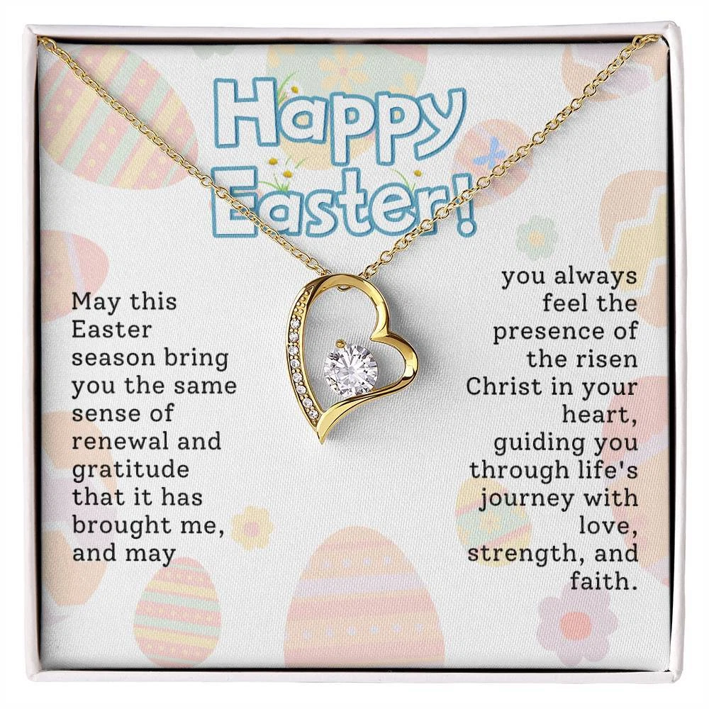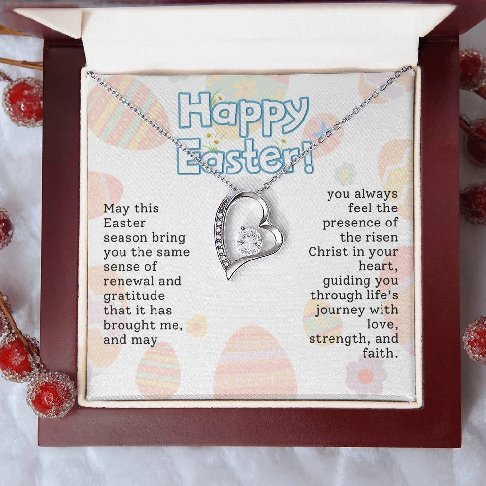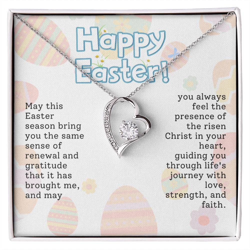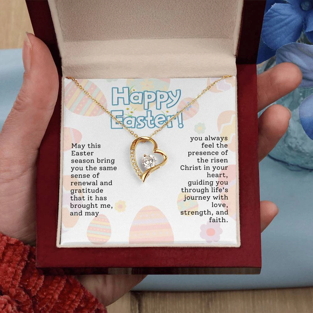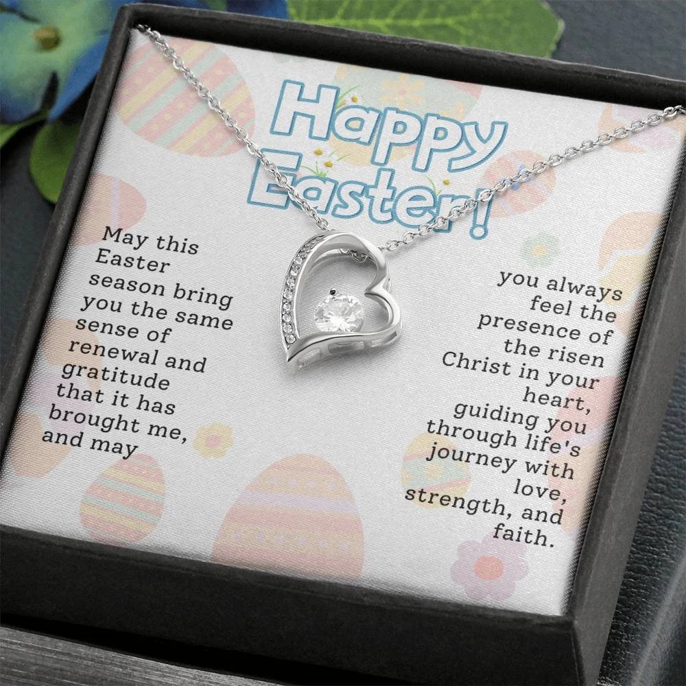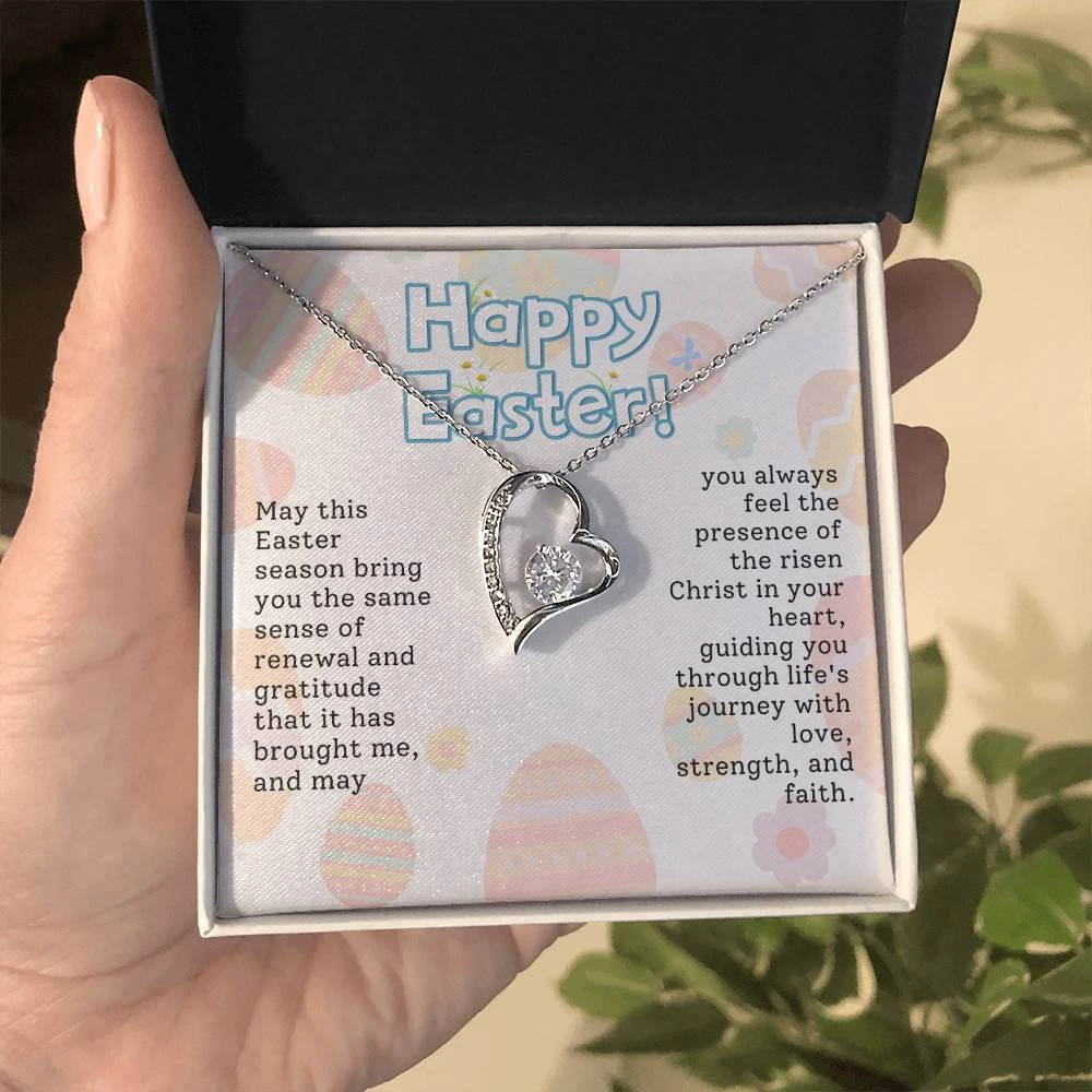 The dazzling Forever Love Necklace is sure to make her heart melt! This necklace features a stunning 6.5mm CZ crystal surrounded by a polished heart pendant embellished with smaller crystals to add extra sparkle and shine. Beautifully crafted with either a white gold or yellow gold finish, be sure to give her a classic gift she can enjoy everyday. 14k white gold finish or 18k yellow gold finish 6.5mm round cut cubic zirconia stone Pendant dimensions: 0.8" (2.2cm) height / 0.7" (1.8cm) width Adjustable chain length: 18" - 22" (45.72cm - 55.88cm) Lobster clasp attachment Your piece is lovingly packaged in a complimentary soft touch box for easy gifting. Elevate your presentation by upgrading to the mahogany style luxury box, which features a brilliant LED spotlight.