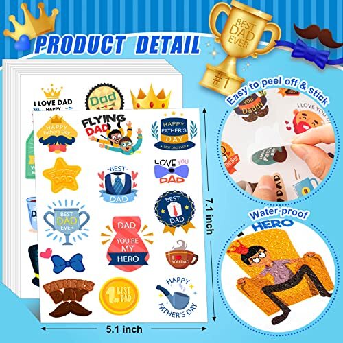 Return Policy Fast Delivery Trusted seller Happy Fathers Day Stickers, 16 Sheet Cute Dad Stickers for Boxes Envelopes Cards Scrapbooking Fathers Day Gift Decorations Product Description VALUE PACKAGE: You will get 16 sheets best Dad stickers for kids, 224 pcs in total, you'll have plenty to use for all of your Father's Day gift and decoration needs. VARIOUS DESIGNS: Father's day Labels Stickers come in vibrant colors and fun designs that will add a pop of color to any gift or decoration, make your Father's Day gift extra special. PREMIUM MATERIAL: Father's day stickers are made of high quality PVC material, these can be stuck on any smooth or rough surface. Waterproof and colorfast, you can decorate it on your Father's Day gift as you like. EASY TO USE: These Father's Day stickers are easy to peel and stick, never worry to damage the surface of attachments, and you can also peel it off and stick on other place again. WIDELY APPLICATION: These father's day stickers for kids can be used not only for Father's Day gifts and cards, but also for scrapbooking, journaling, and other DIY projects. Shipping Returns Payment Shipping Shipping is FREE to all addresses other than APO/PO boxes in the lower 48 states. All our stock ships from US-based warehouses. Shipped via USPS or UPS (depending on location and package weight) Unless stated otherwise, all orders will ship within 24-72 hours of your payment being processed. Check our feedback to see the great reviews of FAST shipping we offer. Returns Seller does not accept returns Payment We currently accept payment via eBay managed payments only. Once payment is cleared, we will dispatch your shipment within 1-3 business days. Please refer to the "Shipping" tab for more information regarding shipping speed to your destination.