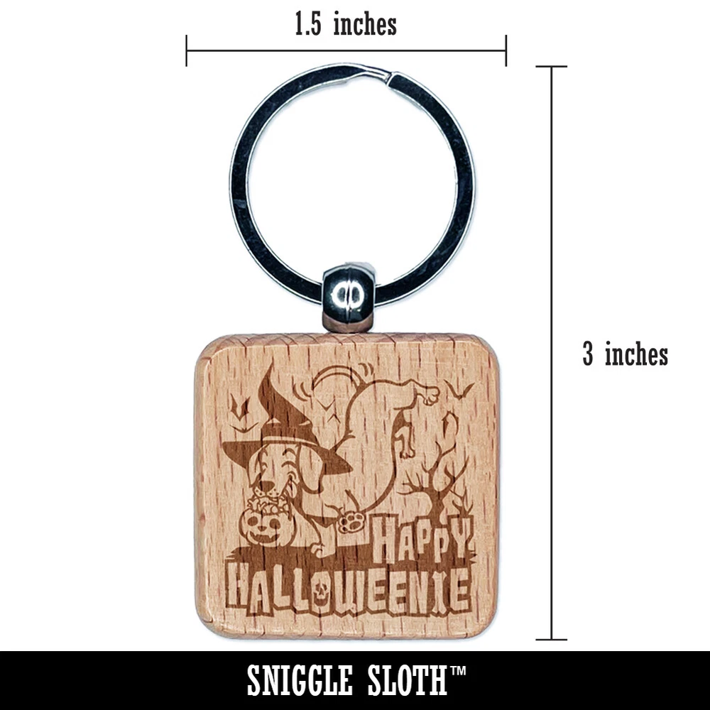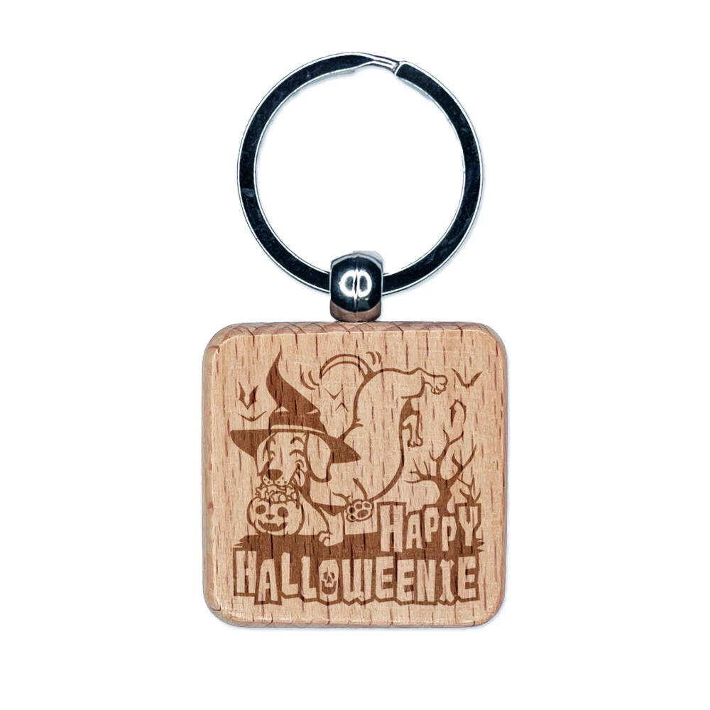 Happy Halloweenie Dachshund Weiner Dog Halloween Engraved Wood Square Keychain