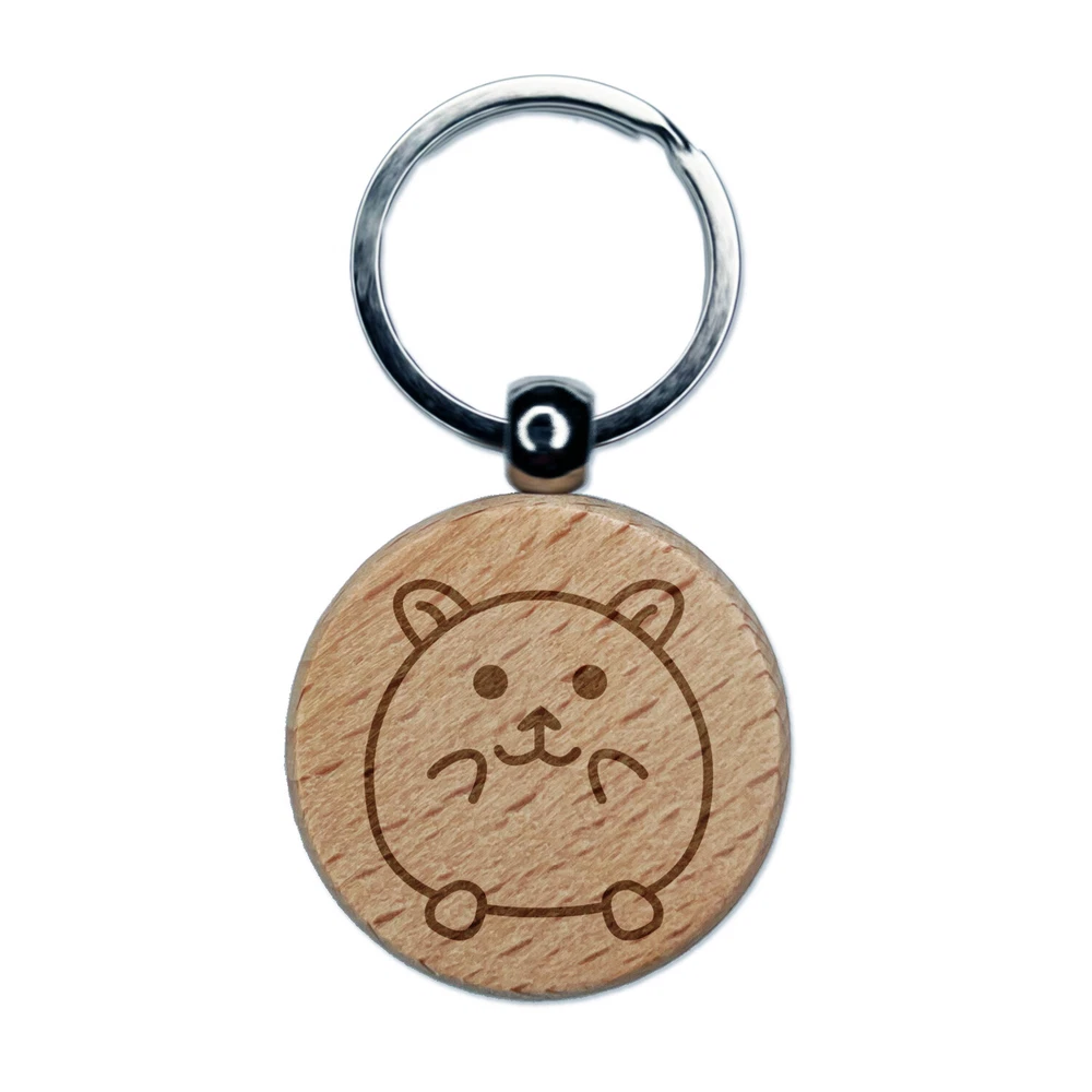 Happy Hamster Engraved Wood Round Keychain Tag Charm
