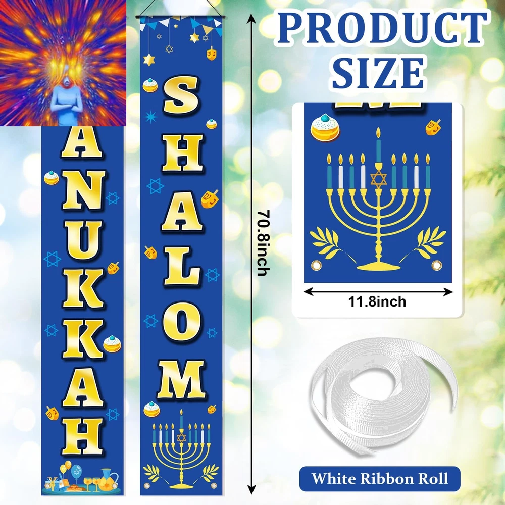 Store New Arrivals Add to Favorite View Feedback Contact Happy Hanukkah Decoration Hanukkah Door Banner Porch Signs Welcome Banner for Home Blue Chanukah Backdrop Hanging Decoration Yard Sign for Wall Door Cover Party Supplies Outdoor Indoor Description Color Blue Target Audience Adults Happy Hanukkah Door Banner - The Happy Hanukkah Porch Sign measures 70.8 x 11.8 inches. Using high-resolution digital printing technology, the product pattern is more realistic, the color is rich, and it is not easy to fade Premium Material - The Hanukkah Front Door Welcome Banner is made of polyester fabric, lightweight, foldable, wrinkle-free, easy to store, seamless, and vertical.Machine washable Easy to Hang: The Hanukkah porch banner has a strap on the top, which is sturdy and easy to hang; a fixed pole is added on the top of the flag. There are two grommets at the bottom of the banner, you can fix your curtain again if you need to. Comes with a white ribbon for hanging decoration Unique Design: At the gathering, classic elements such as the menorah and Hanukkah and the words "Happy HANUKKA" and "SHALOM" create a more intense and lively Hanukkah atmosphere. Chanukah backdrops are perfect for indoor and outdoor photoshoots, photography background decorations, Chanukah parties, commemorative Jewish festival parties, Hanukkah gifts Hanukkah Multi-Scene Use - You can hang banners on both sides of porches, front porch doors, windows, garden terraces, fences, walls, garage doors, and balconies to create a Hanukkah atmosphere. You can also use them as photo booth backdrops, indoor and outdoor home decorations, and Chanukah party decoration supplies Dimensions - 70.8 x 11.8 inches Recommendation - Hand or machine washable Material - Polyester. The Happy Hanukkah Banner Decor is sturdy and reusable, you can use it for years Easy to Hang: The Happy Hanukkah Porch Banner has a strap on top, which is sturdy and easy to hang. The backdrop features independent grommets and can be easily secured with string or nails Folds the backdrop for easy transport. When unfolding, there may be slight creases. do not worry. Gently iron from the crease on the back with a dry iron on low heat, or place in clean water and lay flat to dry. Of course, you can also use it directly, which is also amazing ABOUT US We offer the best prices around on high quality products. Our E-store includes media such as books, movies, music and games while offering electronics, toys, sporting apparel, clothing, tools, general home, garden items and more. SHIPPING We are always working hard to ensure your package arrives as soon as possible. Please understand that some factors like weather, high postal traffic, and the performance of shipping companies are outside of our control. We offer free shipping to the lower 48 states and ship within 2 business days of payment, usually sooner. We do not accept P.O. Boxes. Please provide a physical address. For shipping outside of the continental USA, we only use eBay's Global Shipping Program.The item is shipped to KY and then sent to the rest of the world. International customers are responsible for all duties and taxes. Continue to check out in order to calculate costs for shipping the item to your country. Messages regarding eBay's Global Shipping Program MUST be directed at eBay EXCLUSIVELY. RETURNS We offer a 30-Day Return Policy on items which you are not completely satisfied with. You have the option for a full-refund or an exchange of the item. No returns are available on items shipped outside of the USA. PAYMENT We accept PayPal. CONTACT US This page content is yet to come Please ad us to your favorite seller and visit again later Thank You CUSTOMER SATISFACTION We try our very best to make sure every customer is completely satisfied. If there's a problem, message us! We're happy to help. WE ACCEPT