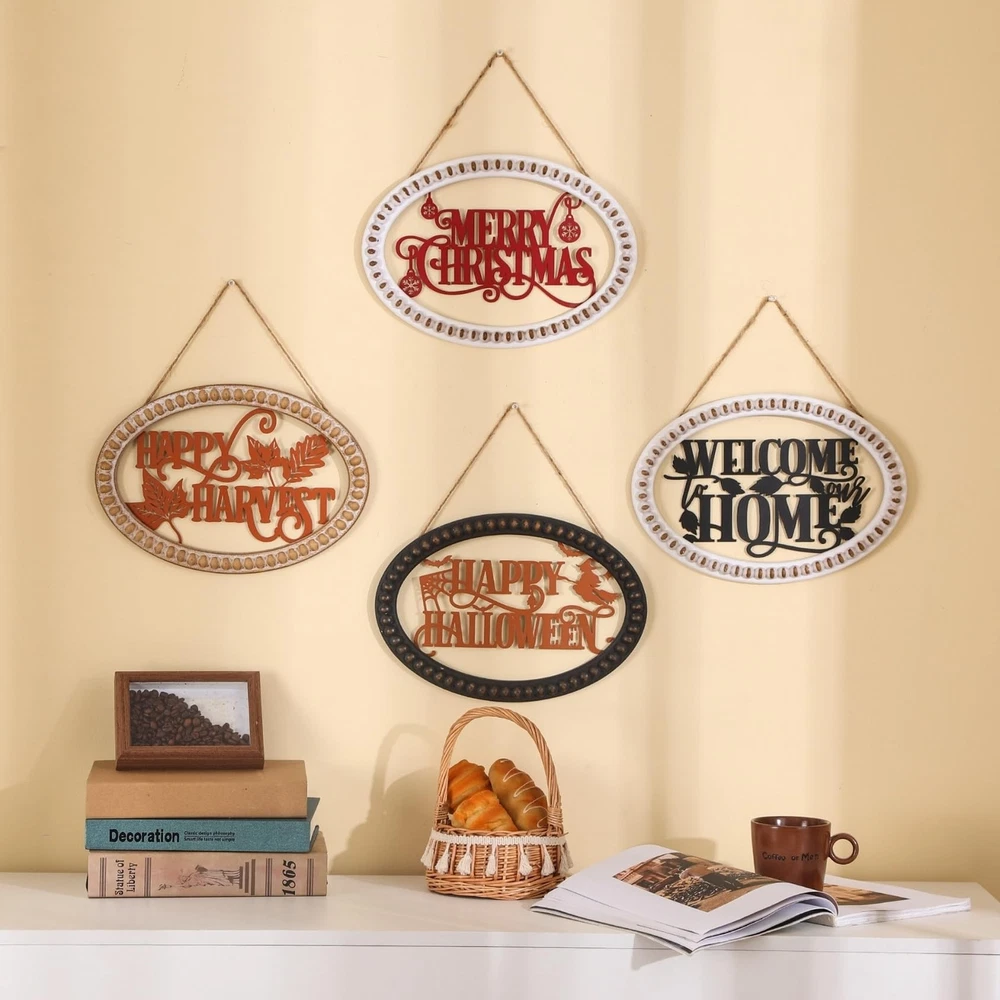 Happy Harvest Sign Farmhouse Autumn Wall Decor Orange Metal Thanksgiving Wall Decorations for Home Hanging Fall Decor with Wooden Beaded Frame Rustic Holiday Front Door Sign Product Details Color: Orange Brand: BAYSBAI MPN: 204027 UPC: Does not apply EAN: Does not apply Color: Orange Brand: BAYSBAI Material: Wood, Metal Theme: Harvest Recommended Uses For Product: Property Mounting Type: Wall Mount Product Dimensions: 13"L x 9"W Shape: Oval Style: Rustic Pre-printed: Happy Harvest Included Components: Happy Harvest Sign Item Weight: 15.3 ounces Manufacturer: BAYSBAI Country of Origin: China Item model number: 204027 Warm and Welcoming: Our fall wall signs brings a cozy and welcoming touch to your autumn decor. Its vibrant orange color and charming design create a festive ambiance that celebrates the harvest season. Oval Beaded Frame: The decor for thanksgiving is elegantly framed with an oval beaded frame, adding a touch of sophistication to its overall aesthetic. The beaded details enhance its visual appeal and create a captivating focal point. Versatile Hanging Options: With a convenient hanging rope on the back, this fall decor sign offers versatile display options. Hang it on walls, doors, or hooks, or even use it as a charming centerpiece for your fall-themed table settings. Durable Construction: Crafted from high-quality materials, our fall wall decorations for home is built to last. Its sturdy construction ensures long-lasting use, allowing you to enjoy its autumnal charm year after year. Celebrate the Harvest: Embrace the spirit of the harvest season with this harvest decor sign. Whether you're hosting a Thanksgiving gathering or simply want to add a touch of autumn to your home, our thanksgiving decorations for home door is the perfect choice.