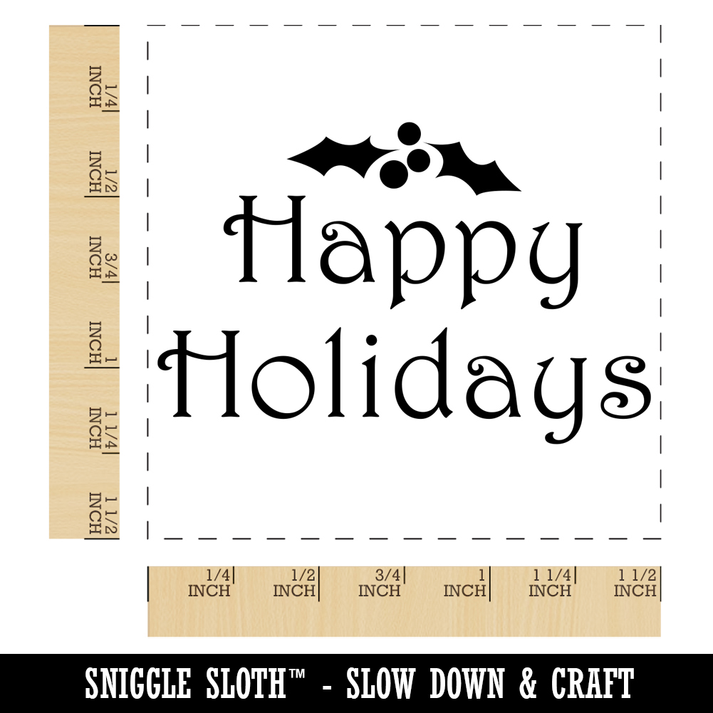Happy Holidays Christmas Holly Festive Text Self-Inking Rubber Stamp Ink Stamper