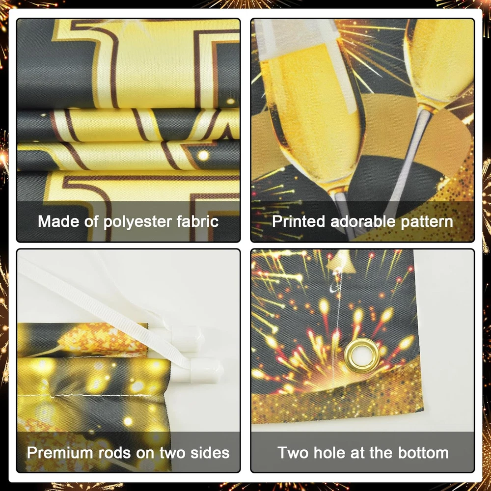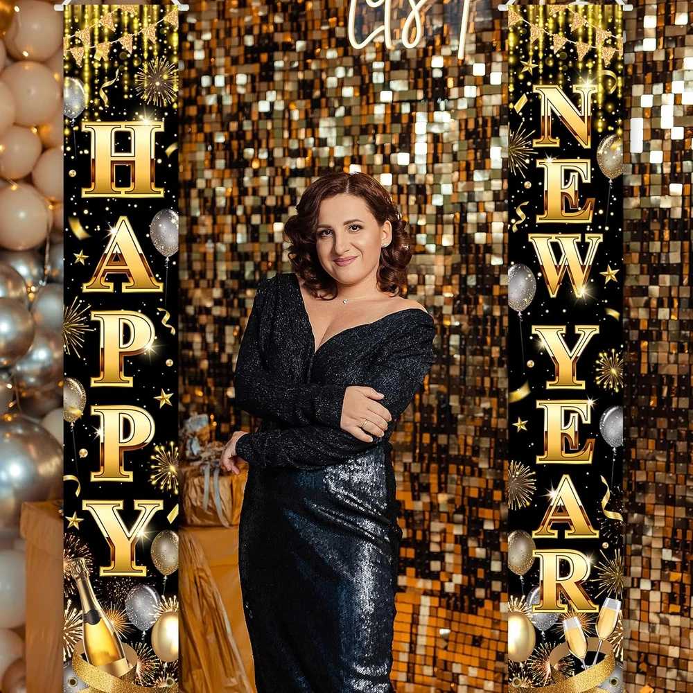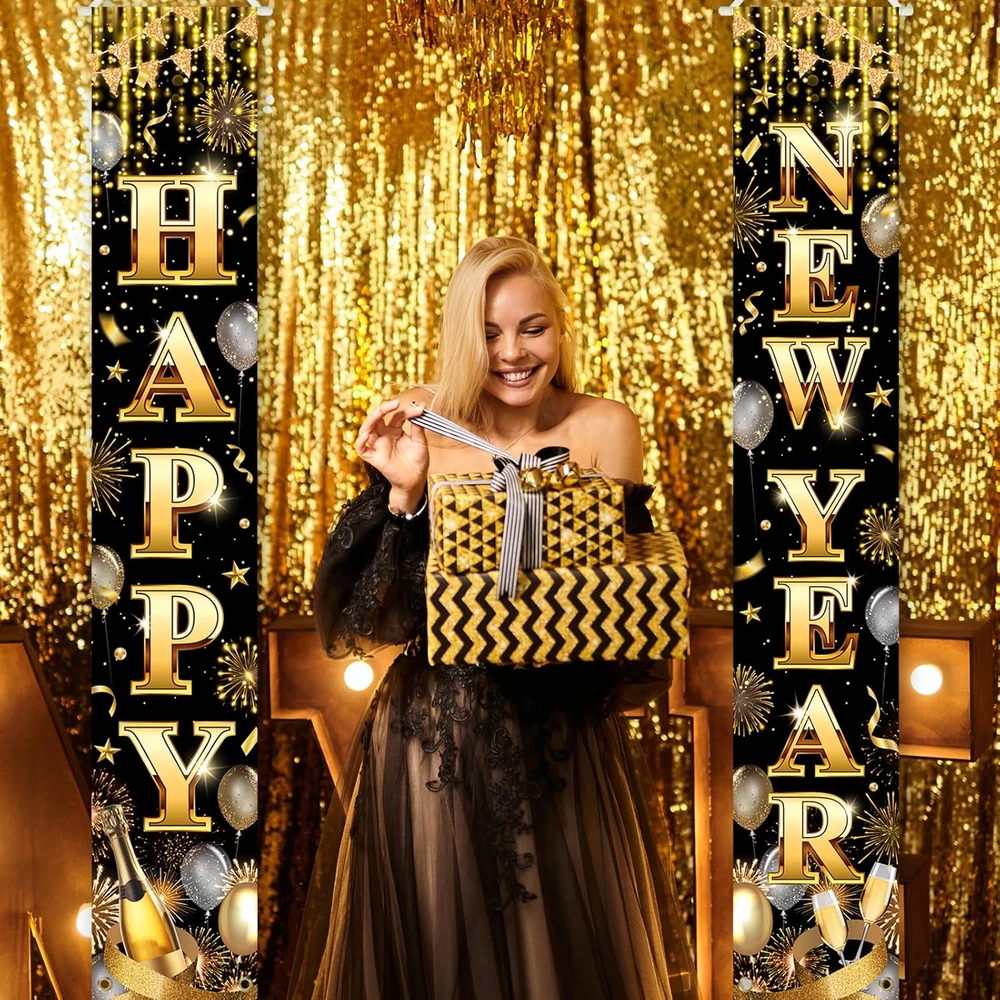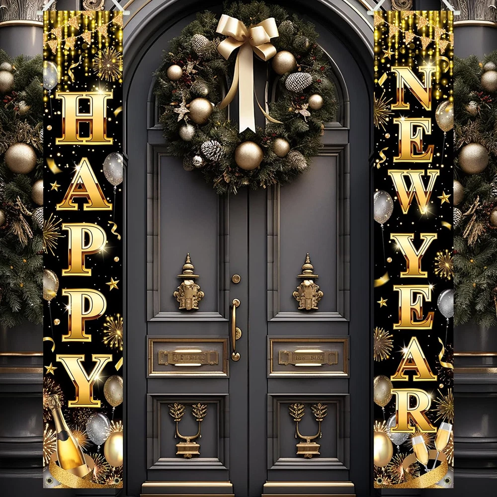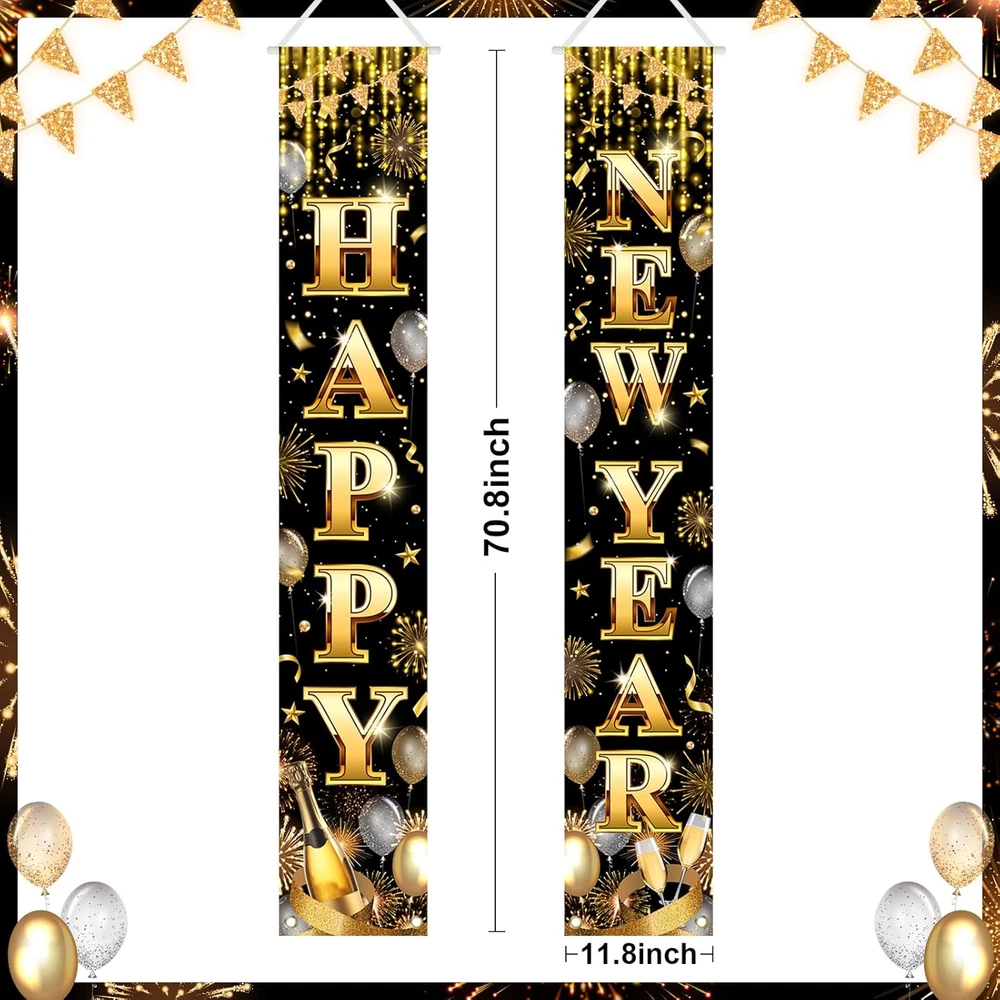 Size & Package: 2 pcs christmas porch signs included. Both in the size of 71"L x 12"W Material: Polyester fabric. Light weight, no chemical smell; Lasting bright, soft to the touch Wide application: The happy new year porch banner make your new year party, holiday family gathering; New year home decor, yard decor; School decor, classroom decor, office decor and other occasions have a strong holiday atmosphere. Hang them on front door, entrance of your new year eve party, fireplace, garden wherever you like to decorate Advantage: Designed by our professional designers, high-resolution computer printing, each porch sign has the best shooting effect Warm tips: Choose a warm washing way, air dry naturally, low temperature ironing Product Description WHAT IS IN THE PACKAGE? The package includes one pair of happy new year porch signs. WHY CHOOSE AVEZANO HAPPY NEW YEAR BANNER? Great Color! Light weight and carry easy. Super Cute! Suitable for various new year eve party; Also used as front door, yard, home, school, office decorations. HOW TO HANG IT? Cord at top for easy hanging, grommet at bottom for fastening.