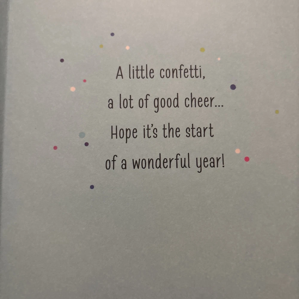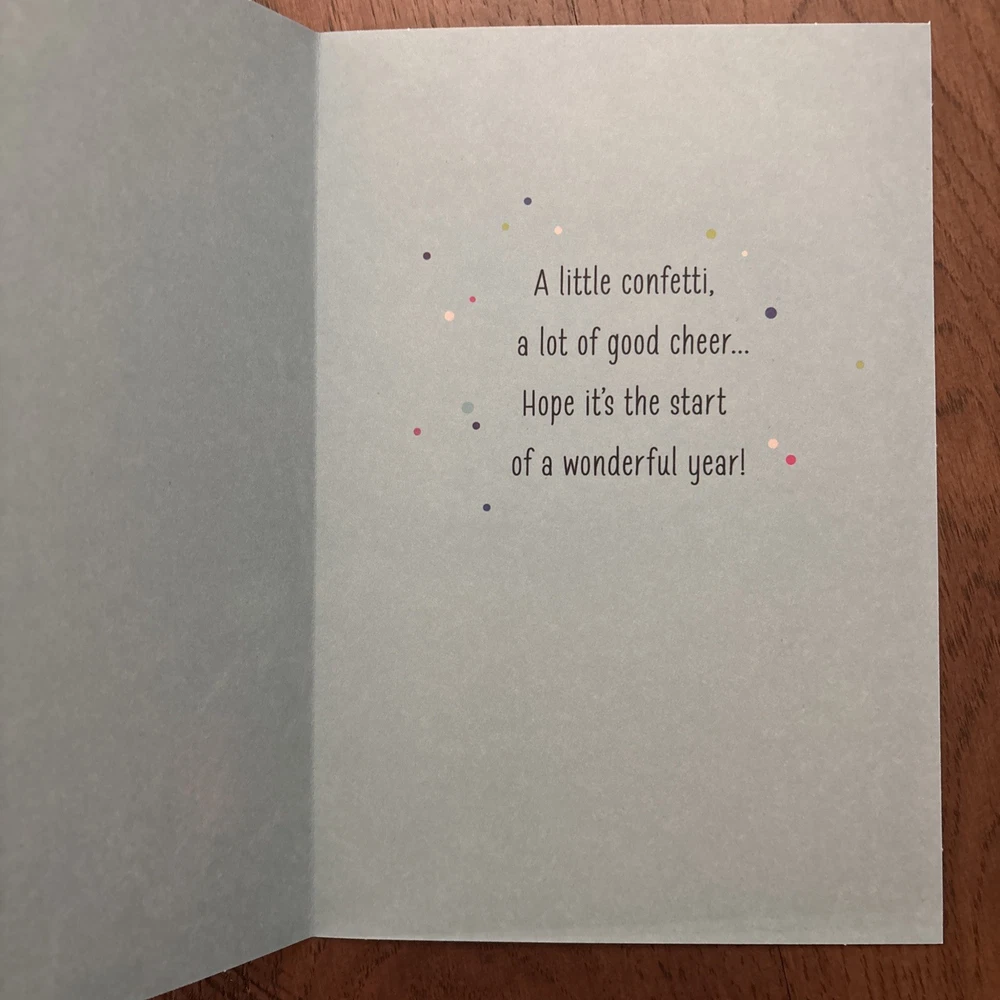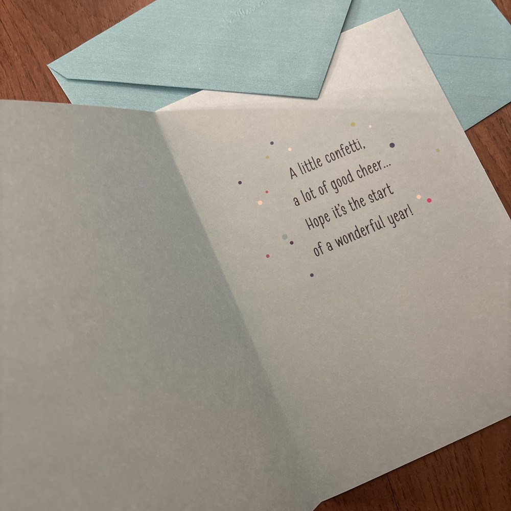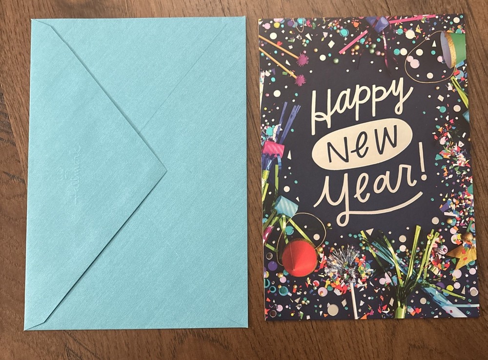 Large Hallmark Greeting Card with Envelope Happy New Year A lot of good cheer… 5.5” X 8” Hallmark Expressions Greeting Card with Envelope See Photos Fast Shipping and Handling Condition is "New". Shipped with USPS First Class with no tracking information, I Mail cards twice a day, so hopefully you receive it fast. See my store Silvios88 Greeting Cards or sellers other items for a large variety of Greeting Cards at great prices. Thank You To all my repeat customers in all of my new customers for the amazing feedback. Please message me if you have any questions. And thank you again.