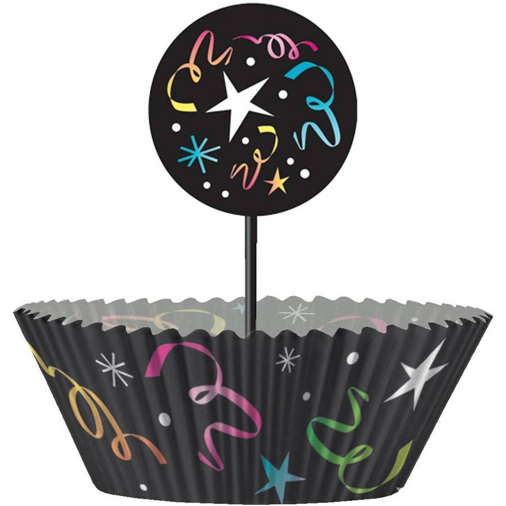 Cupcake Decorating Kit New Years Cheer 24 Standard 2 inch Baking Cups 24 picks