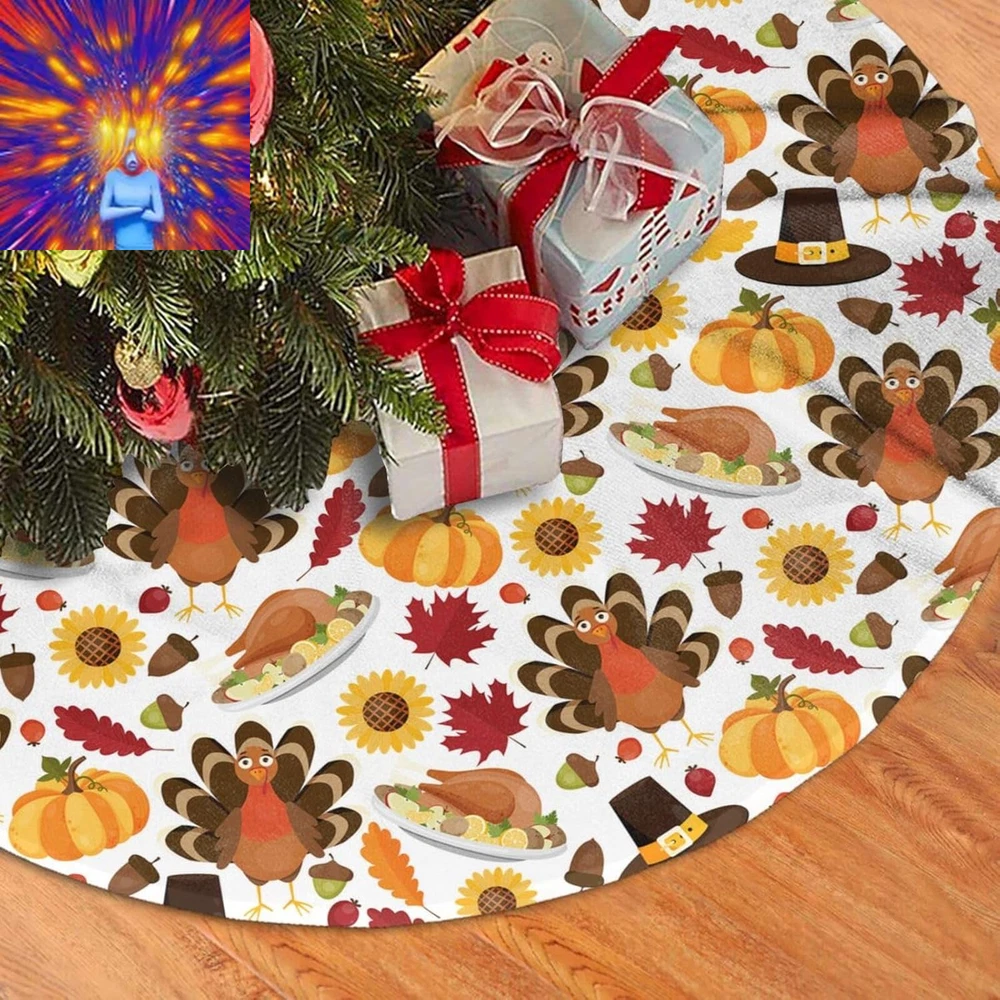 Happy Thanksgiving Day Turkey Pumpkin Christmas Tree Skirt Funny Tree Mat for Fa