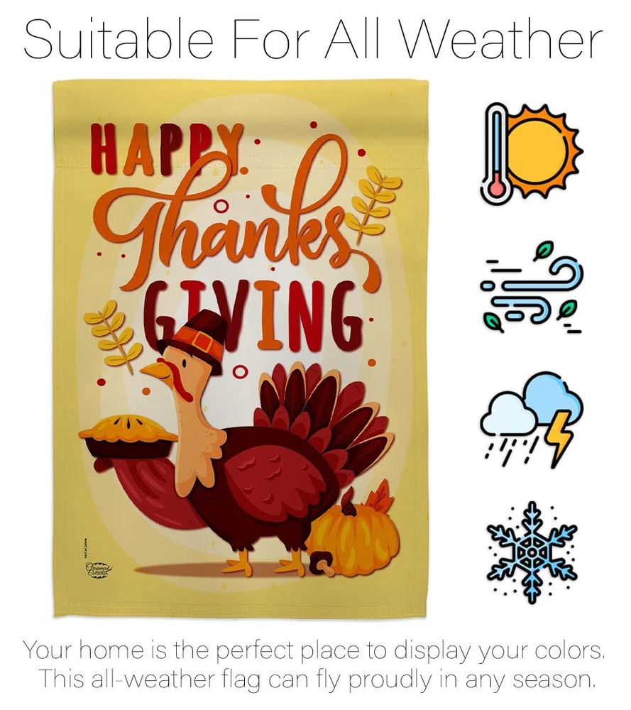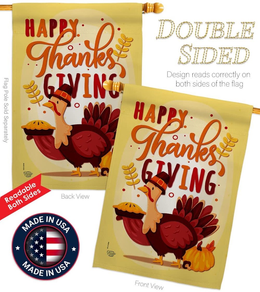 Thanksgiving Beautiful Large House Flags Pack - 2 Sets have variety of House Flags Pack for all occasions. Uniquely design for hanging indoor or outdoor use. We are committed to offering you exceptional values. Our customers enjoy displaying our House Flags Pack for longer periods. Specification: Theme: Thanksgiving Size: House Flags Pack 28" x 40" Print: Double-Sided Readable: Readable Both Sides Material: Weather Resistant 3 Layers Blockout Stitching: Double Stitched Display: Vertical Hang Type: Sleeve Artist: © Ava Storey Special Features: Origin: Made In USA Package Include: 2 pc x House Flag 28" x 40" Package Decorative Flags For more than a decade, we’ve been dedicated to manufacturing flags with no comparison in quality and beautiful designs. Our flags are made with our Guard material that is soft to the touch and designs can be read correctly on the flag. A feature that our customers will love. We are committed to using eco-friendly inks that won’t leave a foot print in our environment. MPN: OC-TG-HP-192228-IP-BOAE-D-US20-OC 92228 92228 PROUDLY Made In USA - Package And Product Designed In California PURCHASE WITH CONFIDENCE - From 's US Authorized Resellers MADE OF DURABLE - 100% Thick Polyester Fabric construction helps resist the wear and tear from frequent use TEXT READABLE BOTH SIDES - House Flags Pack Double-Sided Print DURABLE FLAG - Double stitching panels on multiple rows and high quality Sleeve to provide lasting strength VIBRANT COLORS - With UV-Resistant Maintains Its Colors All Season Long FEATURES - Sleeve Hanger fits standard Banner/Flagpole, Bracket, Arbors or stand, SOLD Separately