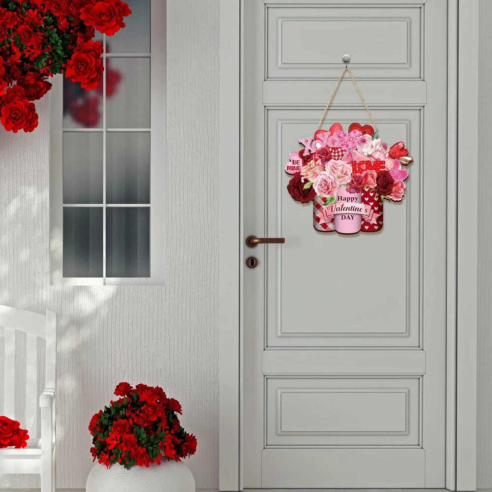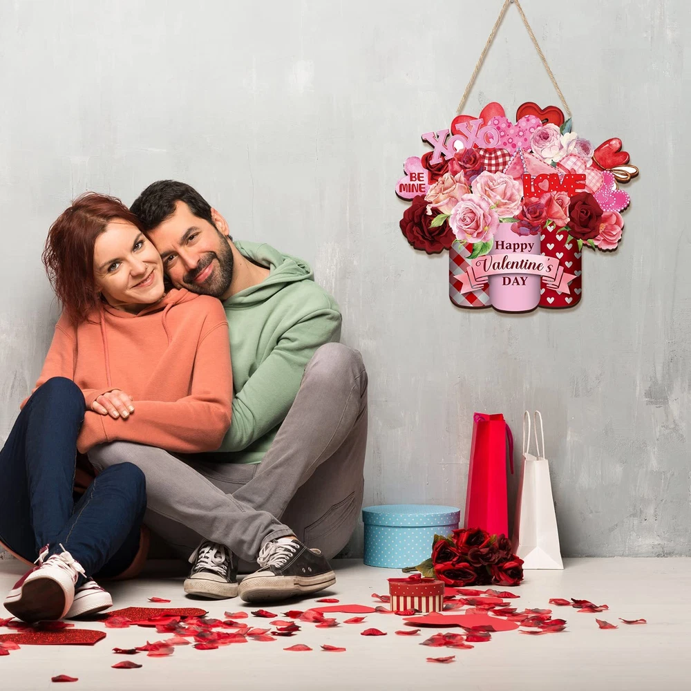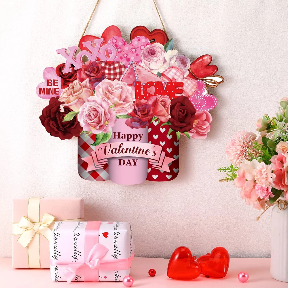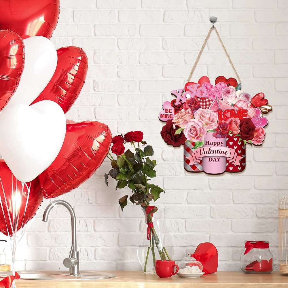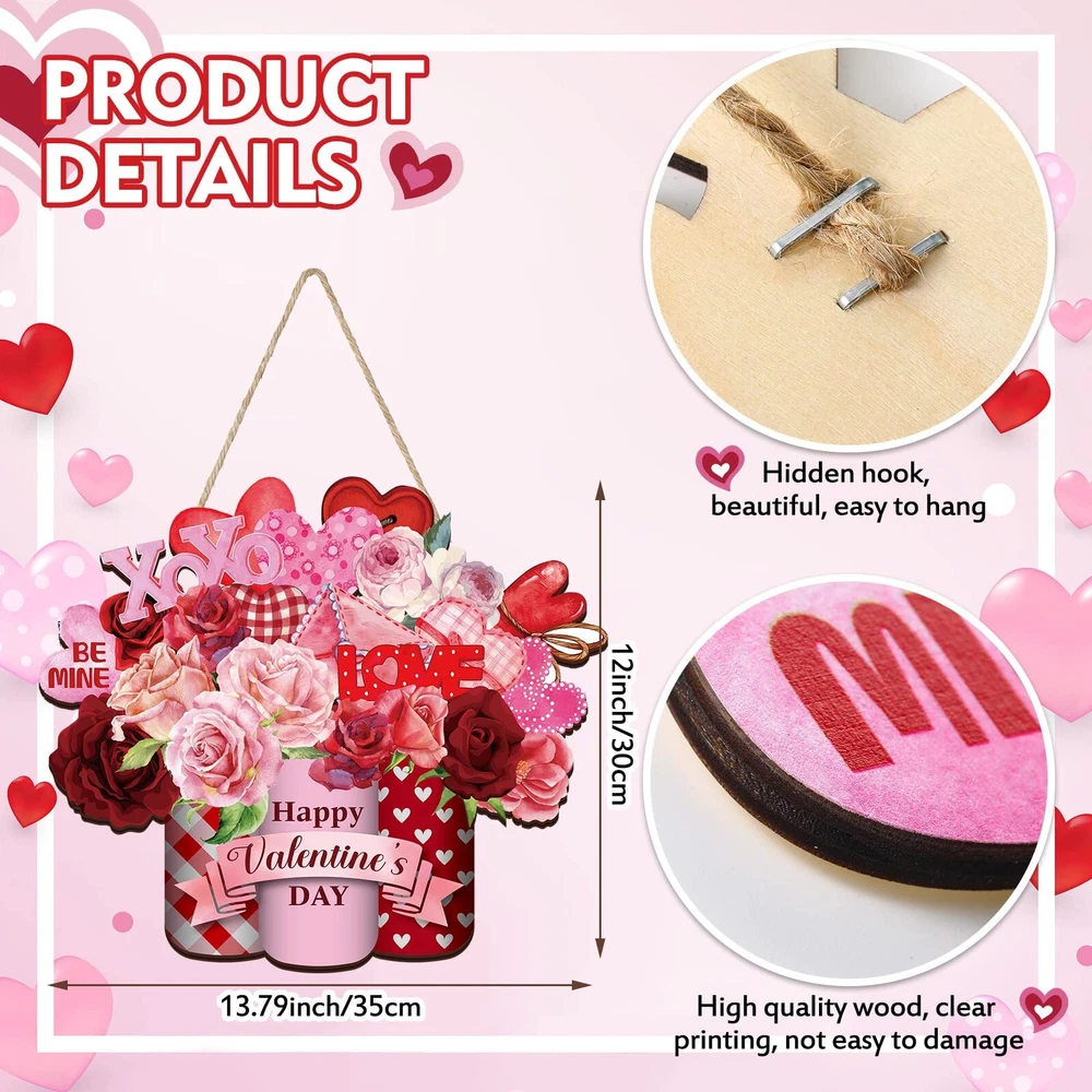 Valentine's Day Wooden Hanging Decoration: the package contains 1 wooden Valentine's Day decoration, equipped with rope, which can meet your daily life or Valentine's Day decoration needs; You can use the hanging sign to decorate your home and increase the sweet atmosphere Valentine's Day Design: valentines door sign is clearly printed with [Happy Valentine's Day], [be mine] and [love] in elegant font, designed as 3 vases brimming with rose and heart, which is full of Valentine's Day elements, adding a romantic atmosphere, making your party or home decor more lively Reliable Wood Material: valentines sign decor is made of quality wood material, nontoxic and safe, bright color, not easy to fade, not easy to deform or break, smooth surface, no burr, can accompany you for a long time Elegant and Exquisite: our hanging Valentine's Day door decoration can match with most home decoration styles; You can hang it in front of your door, elegant and exquisite, achieving a decorative effect, adding a warm and charming atmosphere Wide Application: valentines hanging decoration can be hung on the wall, door, living room, kitchen, bedroom, corridor, garden, yard, tree branches and other places in your home, suitable for Valentine's Day and other festivals to add romantic atmosphere