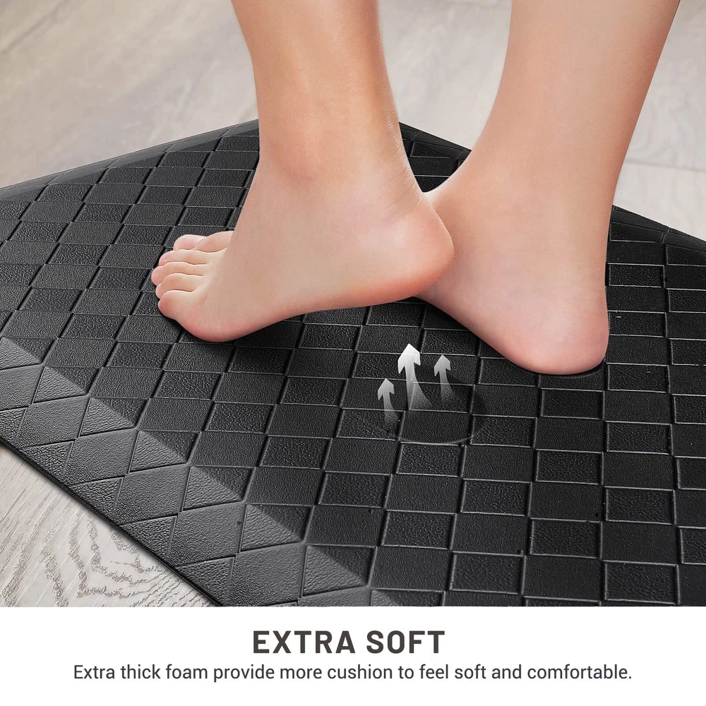 HappyTrends Kitchen Floor Mat - 4/5 Inch Thick Anti-Fatigue Kitchen Rug,Waterproof Non-Slip Kitchen Mats and Rugs Heavy Duty Ergonomic Comfort Rug for Kitchen,Office,Sink EXTRA SOFT:Extra thick kitchen mats are ergonomically designed for your comfort and are perfect choice for for people who spends a lot of time on their feet at work or at home.Cushioned support help improve circulation and posture while maintaining the firmness needed to keep a steady footing WATER RESISTANT:Our anti-fatigue mats are made of premium quality PVC material making it convenient to clean up and will not collect dirt;The material repels water,oils or stains and if anything spills,it makes an effortless clean up;Grid pattern surface never wrinkles and gives a premium texture without collecting debris NO TRIPPING:The non skid washable kitchen mats and rugs are designed with advanced beveled edge and non-slip backing helpful to protect you from slippage and tripping.Beveled edge with anti-curl prevents tripping and you can rely on to keep your family safe VERSATILITY:The memory foam kitchen floor mats provide extra large areas for standing in laundry room, kitchen, office, farmhouse,in front of sink or any other high-traffic indoor or outdoor space NON-SLIP:Nonslip PVC Bottom is manufactured so that they do not move around like other mats while a slight texture on the top makes them slip resistant; Rug must be placed on dry surface during use Have you ever suffered back aches caused by your uncomfortable posture while washing dishes, cooking, doing laundry or working? The HappyTrends kitchen rugs and mats can help provide a comfortable space for standing and working in the kitchen or in any work space. The anti-fatigue kitchen floor mat provides support to help relieve pressure for your feet, knees, joints, and lower back. Cushioned Support Extra thick anti-fatigue kitchen mat is ergonomically engineered and its cushioned support helps improve circulation and posture It is a must-have if you are on your feet for extended periods (such as chef, hair sylist, etc.). Anti-Slip Backing The foam mat for floor has a non-slip bottom to ensure that the mat will stay in place for added safety and stability. The anti-fatigue foam mat may be used on various floor surfaces. Waterproof and Easy to Clean The kitchen runner rug is easily cleaned; simply wipe dirt off with a damp cloth or use a hand-held vacuum as needed. The waterproof surface ensures long-term durability. Rip-Stop Premium PVC Material This comfort standing mat is made of heavy duty PVC material. The PVC is very durable and scratch resistant. The mat is built to last, even with continuous use. Shipping We offer FREE shipping on all orders! We use a selection of shipping services such as UPS, FedEx, USPS etc. We only ship to the lower 48 states, no APO/FPO addresses or PO Boxes allowed. Local pickups and combined shipping options are not provided at this time. Return You can return a product for up to 30 days from the date you purchased it. Any product you return must be in the same condition you received it and in the original packaging. Please keep the receipt. Payment We accept payment by any of the following methods: PayPal Please pay as soon as possible after winning an auction, as that will allow us to post your item to you sooner! Feedback Customer satisfaction is very important to us. If you have any problem with your order, please contact us and we will do our best to make you satisfied. Contact Us If you have any queries, please contact us via ebay. We usually respond within 24 hours on weekdays. Please visit our eBay store to check out other items for sale! Thank you for shopping at our store.