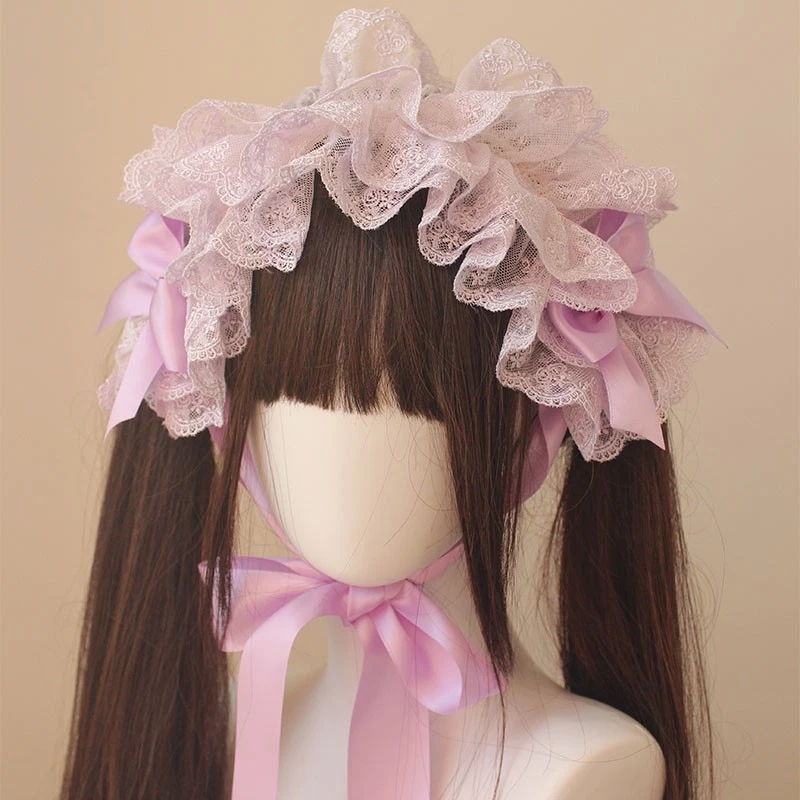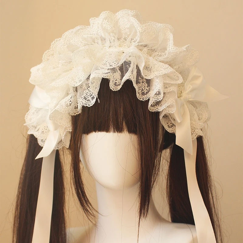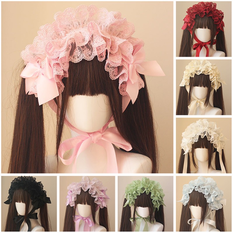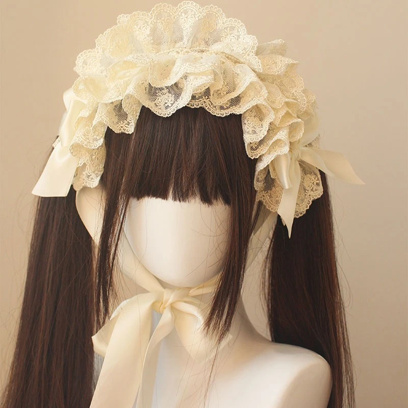 Harajuku Gothic Lolita Handmade Hat Headband Multi-layer Lace Hair Bands Hairpin