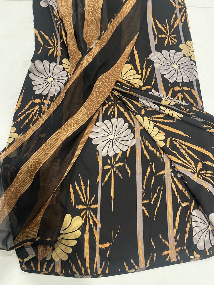Harari Women's Size M Orange and Black Silk Midi Wrap Skirt Floral Silhouette