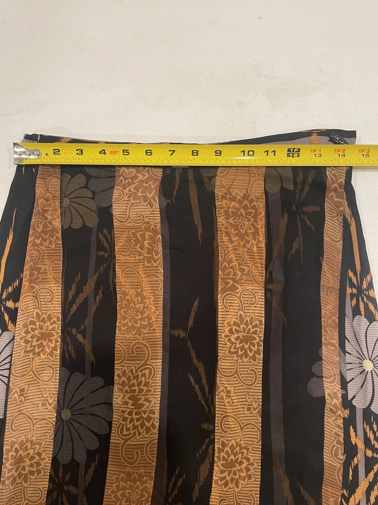 Theme: Holiday, Bohemian, Asian, Flower, Nature, University Department: Women Brand: Harari Skirt Length: Midi Material: Silk Personalize: No Size Type: Regular Type: Skirt Handmade: No Fabric Type: Silk Garment Care: Dry Clean Only Features: Elastic Waist, Wrap Season: Spring, Summer, Fall, Winter Style: Wrap Country of Origin: China Pattern: Floral Occasion: Casual Color: Black/Orange Rise: High Closure: Hook & Loop Size: M