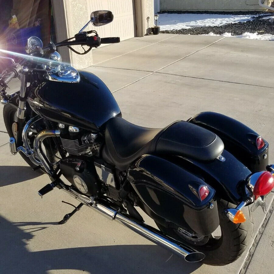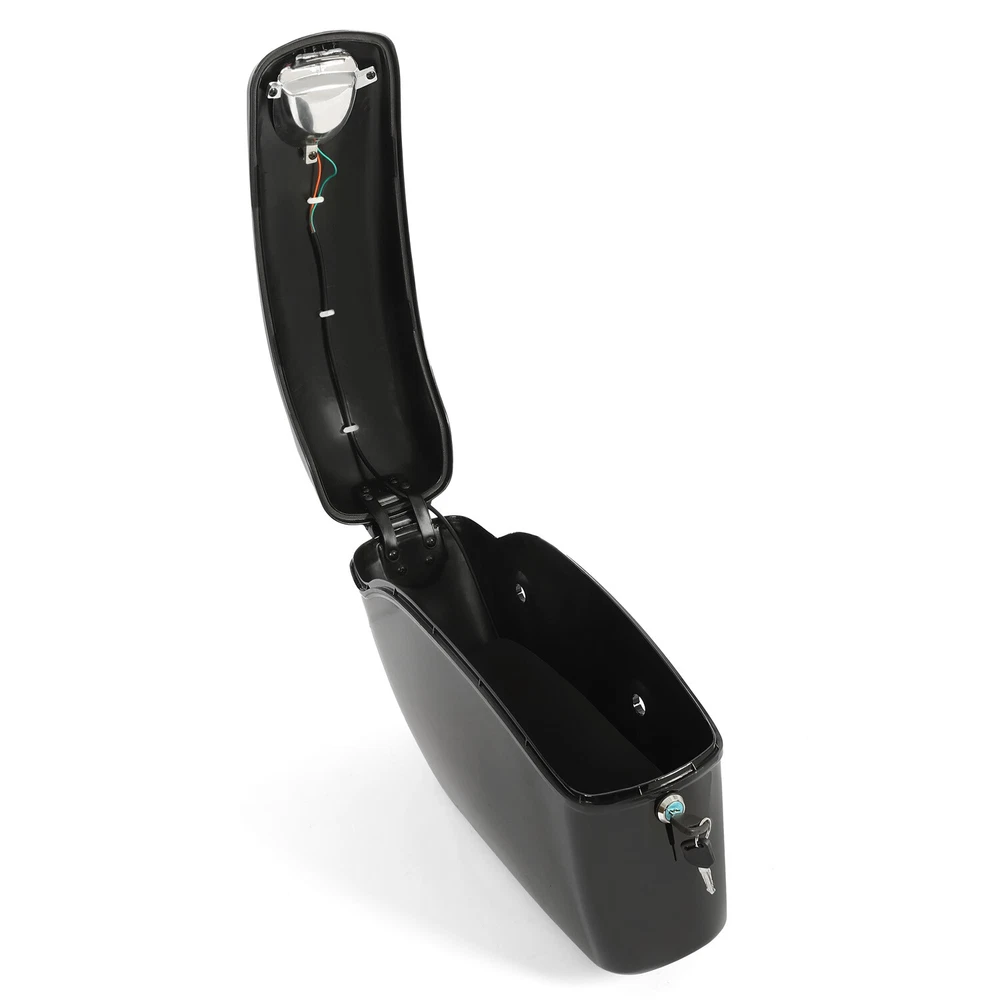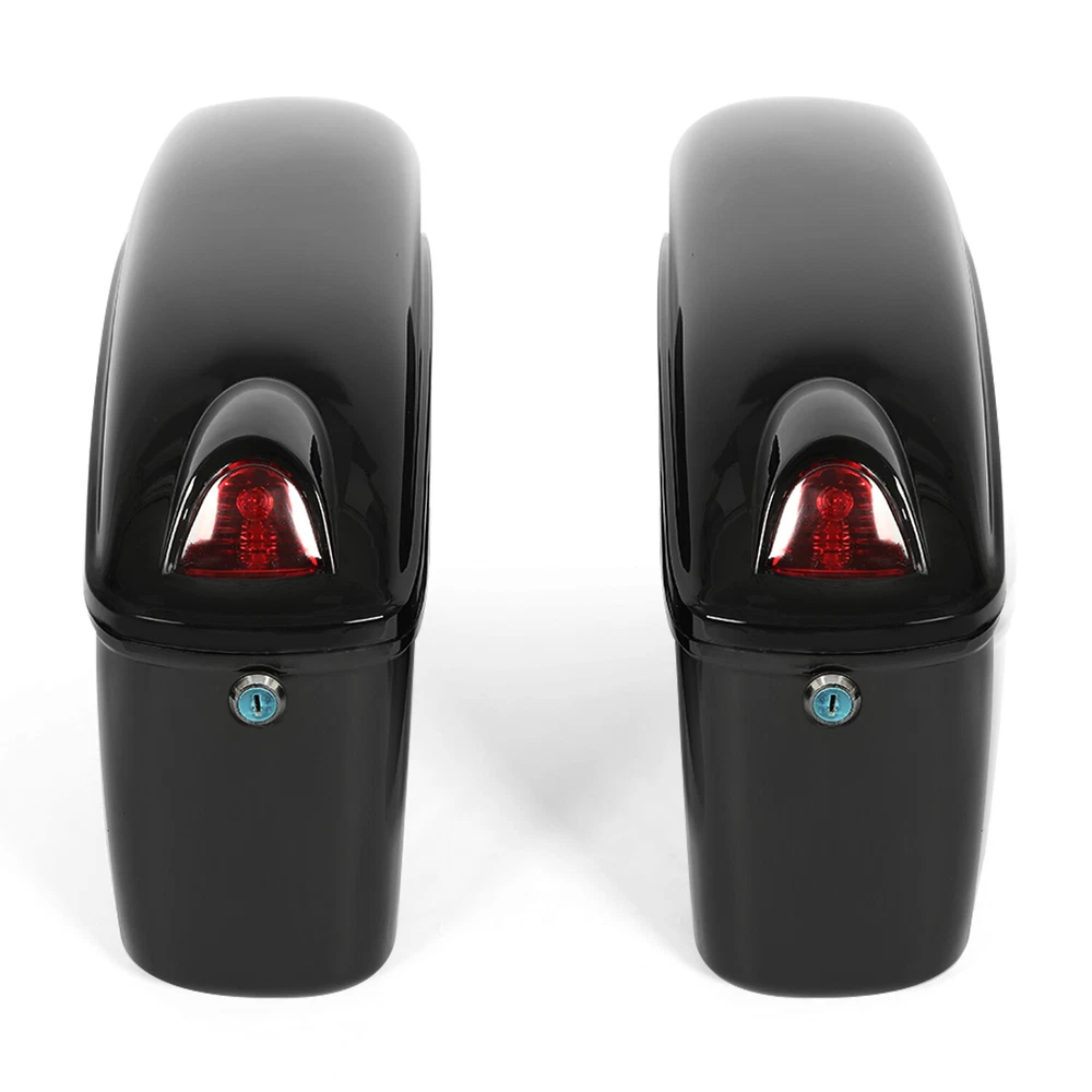Hard Saddle Bags Bracket For Yamaha Honda Trunk Luggage Motorcycle accessories Fits for Fits most bikes and cruisers( Harley Honda Yamaha Suzuki Kawasaki ) with the proper mounting hardware Please Note These are universal saddle bags. They will fit most bikes and cruisers with the proper mounting hardware. Our universal brackets are made to fit most of the cruisers with the fender railing. We tried to design our brackets as universal as possible. however, every motorcycle is different. Please examine the brackets and overall dimensions, make sure they will fit your bike. Please double check the overall size(17" L x 11.5" H x 5.5" W) to confirm it is not too big or small for your bike. If your turn signals don't provide clearance, relocation will be required Feature [Material] Made of thickened ABS Plastic, always keep in good shape. [Safety] Our saddle bag is equipped with a turn signal, which can be connected to the turn signal and brake light, and further ensures your driving safety. It can give timely and accurate signals to the vehicles behind to avoid collisions, providing enhanced visibility and safety on the road. [Wide Compatibility] These saddlebags have a universal fit and are compatible with various motorcycle models. However, it's important to ensure proper clearance between the saddlebags and the top exhaust to prevent interference. [Easy installation] Come with Heavy Duty Mounting Kit, easy to install. Specification Condition: Brand new Color:Gloss Black Material: ABS plastic Overall Dimensions: 17" (Length), 11.5" (Height), 5.5" (Width) Package list : 1 Pair saddle bags(left+right) with Mounting hardware Installation Instruction Included Shipping: All items will be shipped out in 1 business day, no expedited service available. We ship our items to USA only(Does NOT include Hawaii, Alaska or Puerto Rico, PO Boxes/APO's). Shipping Notes We use multiple warehouses and will select the nearest warehouse for delivery according to your order address and our inventory, Thank you for your cooperation. Contact us Any Questions, Just feel free to contact us on eBay. We will reply you in 24 hours. On May 4, 2024 at 18:46:57 PDT, seller added the following information: On Aug 12, 2024 at 02:18:17 PDT, seller added the following information: On Nov 5, 2024 at 00:20:40 PST, seller added the following information: