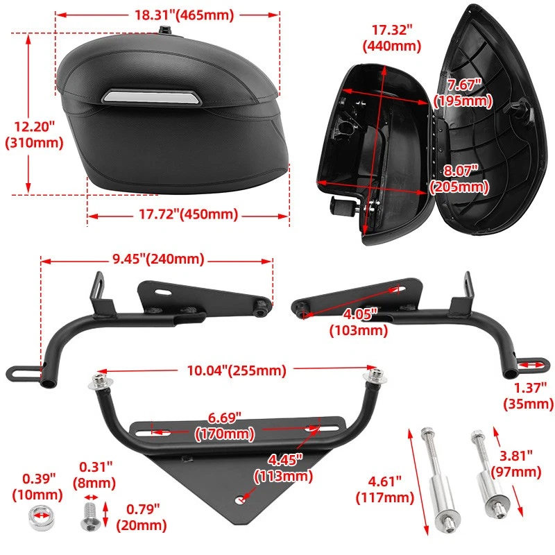 Specification: Color: Black Material: PU Leather+Iron Size: As the picture show Fitment: Fit for Harley Sportster models 2004-2025 Fit for 1200 Nightster XL1200N 2009-2012 Fit for 50th Anniversary Sportster XL50 2007 Fit for Forty Eight XL1200X 2010-2022 Fit for Iron 883 XL883N 2009-2022 Fit for Seventy Two XL1200V 2012-2017 Fit for Sportster 1200 Custom XL1200C 2004-2020 Fit for Sportster 1200 Low XL1200L 2006-2011 Fit for Sportster 1200 Nightster XL1200N 2007-2008 Fit for Sportster 1200 Roadster XL1200R 2004-2008 Fit for Sportster 883 Custom XL883C 2004-2009 Fit for Sportster 883 Low XL883L 2005-2009,2011-2020 Fit for Sportster 883 XL883 2004-2008 Fit for Sportster 883L XL883L 2006-2009 Fit for Sportster 883R XL883R 2005-2007 Package Included: 1 Pair Motorcycle Saddle Bags Kit Notes: -Please allow slight manual measurement deviation for the data. -Please double confirm your vehicle model is exactly same as us before purchasing. -Easy to install and no install instructions You may also like Saddlebag Support Guard Bar Pannier Rail For Triumph Bonneville T100 T120 17-up 37.04 USD 1.99 USD Black Saddlebag Guard Rails Bag Guards For Harley Road Street Glide 1997-2008 101.64 USD Free shipping Saddlebag Guard Rails Bag Guards For Harley Street Glide Road King 1997-2008 126.34 USD Free shipping Rear Saddlebag Support Guards Rails Fit For Harley Touring Road Glide 2009-2024 78.84 USD 1.99 USD Saddlebag Support Bracket Holder For Harley Sportster 883 1200 Heritage Softail 19.94 USD 3.99 USD Large Hard Saddlebags Bags Motorcycle Luggage Trunk For Harley Honda Suzuki 272.64 USD 326.99 USD