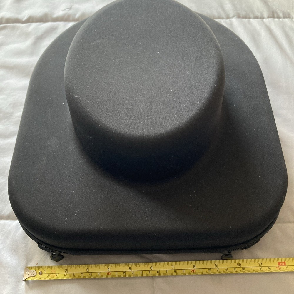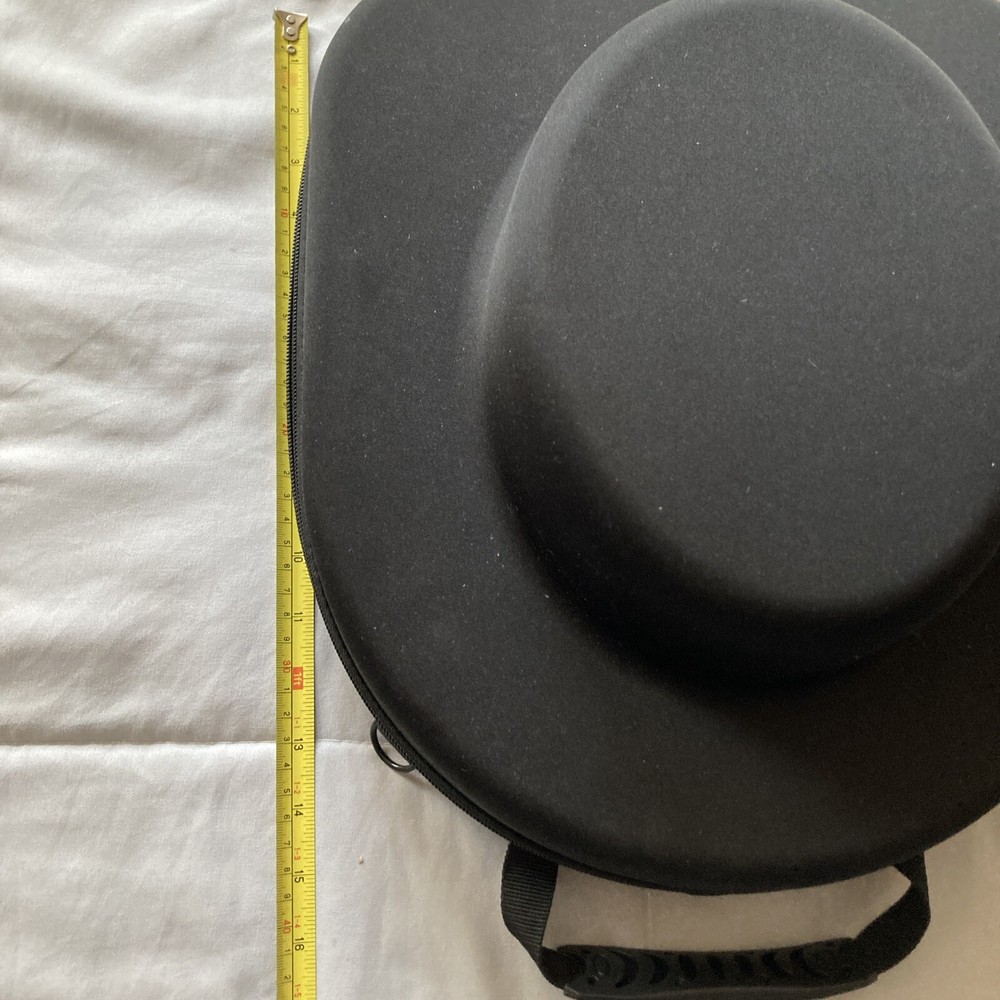 This hard shell hat case is the perfect solution for storing and protecting your favorite fedora, panama, or other style hat. Made from high-quality EVA materials, this case is both lightweight and durable. The solid black color and hat box style make it a sleek and stylish addition to any wardrobe. Measuring 15.5" x 13.5" x 6", this unisex adults hat box is spacious enough to hold most hats. The case features a hat box style and is perfect for storing and organizing your collection. Whether you're a hat collector or just looking for a stylish way to store your favorite hat, this hard shell hat case is the perfect solution.