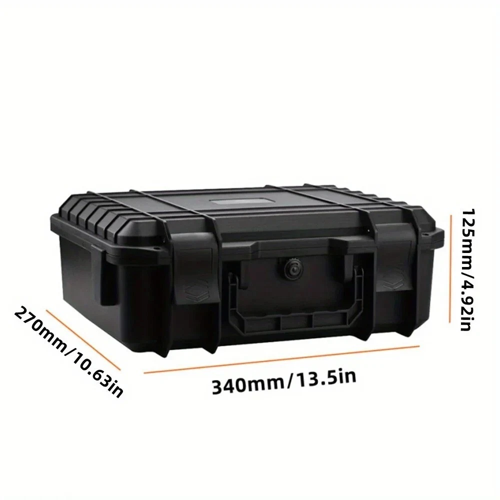 Crafted for durability and convenience, this Hard Shell PP Toolbox is the ideal choice for professionals and DIY enthusiasts alike. Its robust plastic construction provides a sturdy and lightweight solution for storing and transporting tools. The sleek black design ensures that it's both stylish and functional, suited for any work environment. The toolbox is thoughtfully engineered to offer a shockproof exterior that protects its contents from impacts. Portable and versatile, it's designed to be easily moved, making it a great companion for projects at home, in the office, or on the go. With its unbranded simplicity, it blends seamlessly into your toolkit, ready to serve your needs. Specifications: Material: PP, sponge Color: Black Size: Show as pictures Features: - Excellent shockproof, waterproof, dustproof function. - Widely used in aviation, outdoor photography, field investigation, scientific exploration and many other fields. - Composite buckle, the use of stretching process, smart, convenient, strong, to prevent the collapse of the box. Package included: 1 * Box with sponge Note: - Please allow slight 1-3cm difference due to manual measurement and a little color variation for different display setting. - The pictures are only for reference, please make the object as the standard.