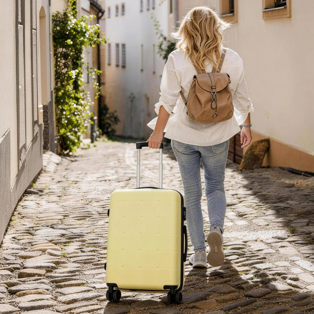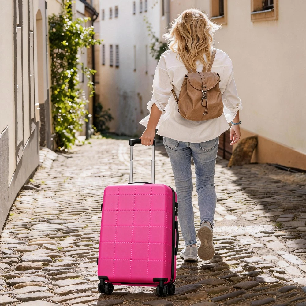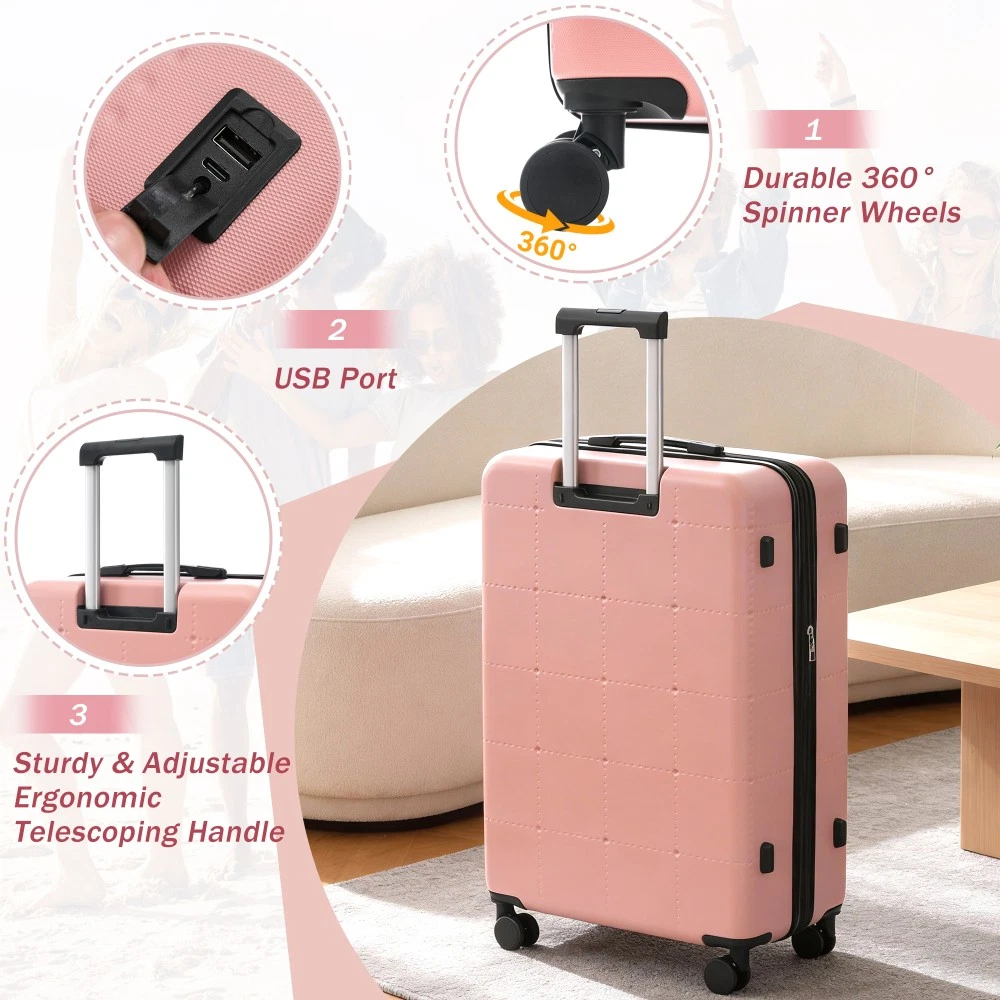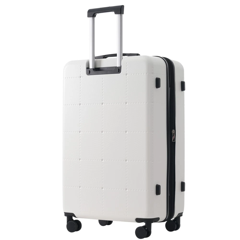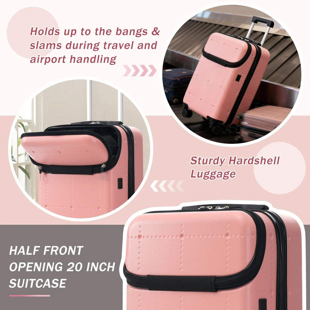 Durable Material: Crafted from high-quality ABS, this 5-piece luggage set includes 20"(half-opening)24" (common) and 28"(common) suitcases and 1 duffel bag & 1 toiletry bag that are lightweight .The matching bags are made of tightly crafted fabric, adding more convenience to your travel. 20 Carry on Luggage: The 20-inch carry-on is ideal for short trips, built-in USB port and data cable for charging devices on the go (power supply not included). The front half-opening design allows you to carry computers, ipads and other items with easy access. Expandable Space (24"+28" ): The 24-inch & 28-inchsuitcase offer more expandable space, giving you more room for packing when you need it most, ideal for longer trips or extra belongings. Safe: Our 3-piece luggage sets are equipped with explosion-proof double zippers, offering an additional storage space. The TSA lock is designed to avoid violent damage to the luggage, which allows only customs agents to inspect your bags without damaging the lock when traveling. Travel Luggage Accessories: Duffel bag can be used to organize and store personal items for easy portability. The luggage bag has a pocket on the back that can be put on the luggage handle, which is very convenient for travel. We have perfected our hard case luggage collections, with high quality material molded body coveted. Instructions for Reset the 3 Digit Secure TSA Lock--20 inch The original combination is 0-0-0. To set your own combination, please follow these steps: 1) With the lock in the 0-0-0 position. 2) Press down the reset button [A] with a pen or other tool until you hear a "click"sound. 3) Set your own combination by turning the dials [B]. For example, 8-8-8. 4) Push the button [C] in the direction of the arrow until you hear the "click"sound again, confirming that you have set your personal combination. Instructions for Reset the 3 Digit Secure TSA Lock--24 & 28 inch 1. The initial password of lock is 0-0-0. 2.Press the reset hole with the tip of the pen. 3.Set the new 3-digit code while pressing. 4.Now you can open the lock with the new password.