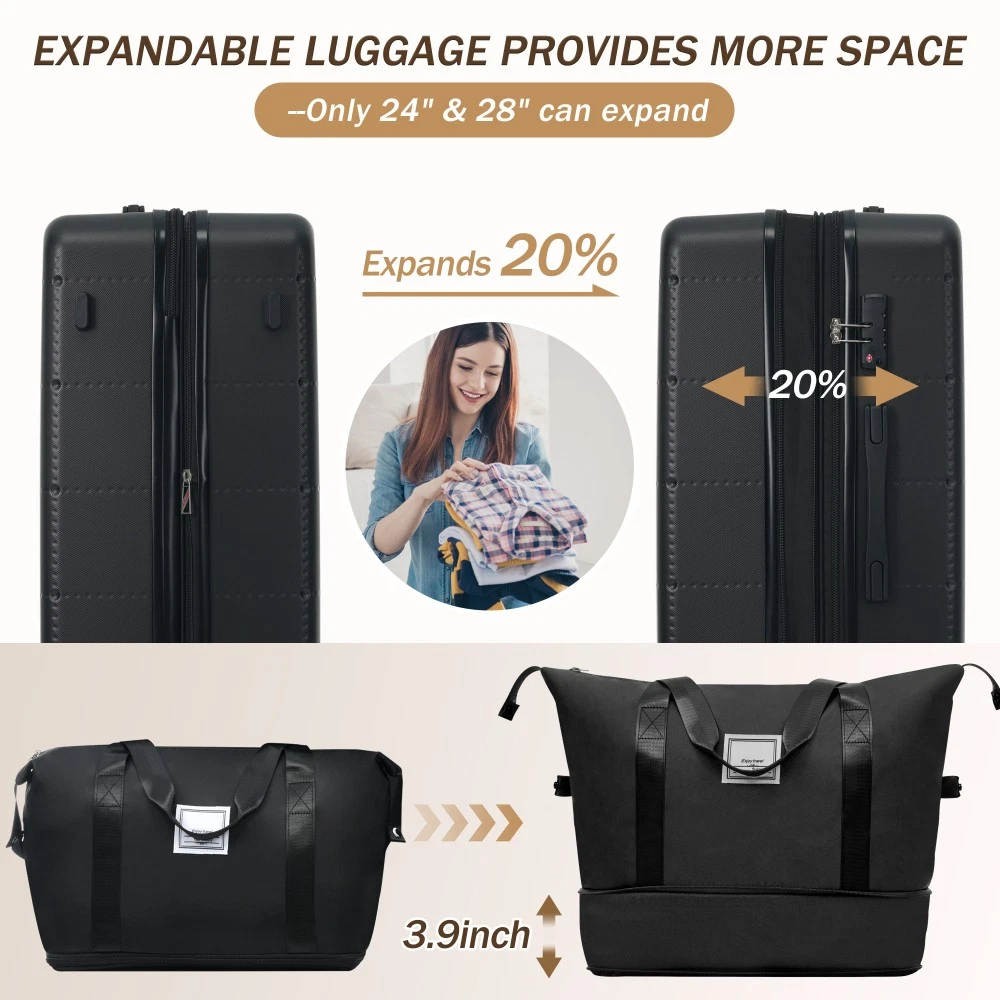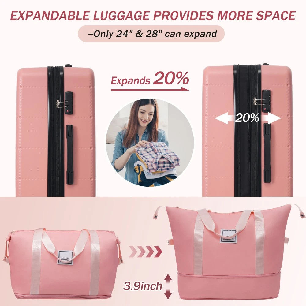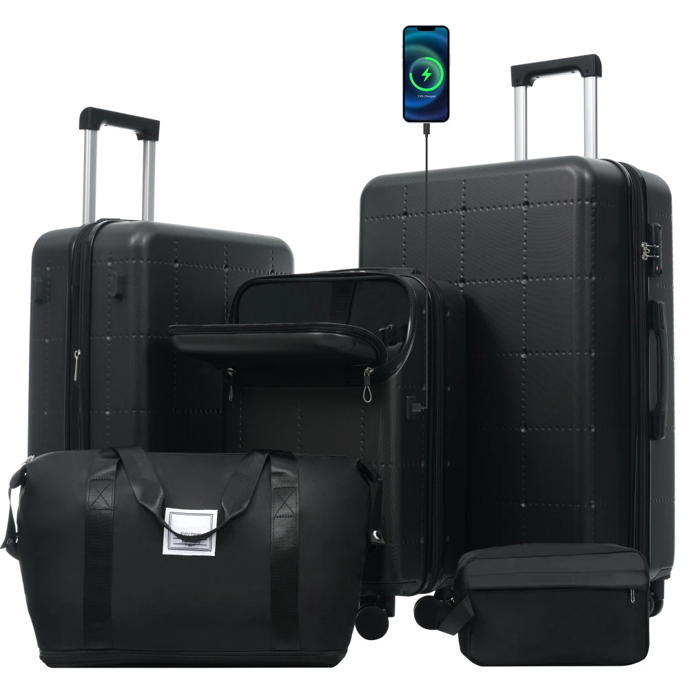 ABS+PC Luggage Set 5 Piece Expandable Suitcase 20/24/28 Inch with Spinner Wheels