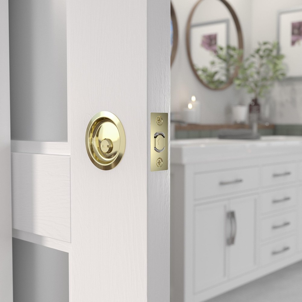 Hardware 17RBB42 Onward Round Pocket Door Privacy Pull Bright Brass