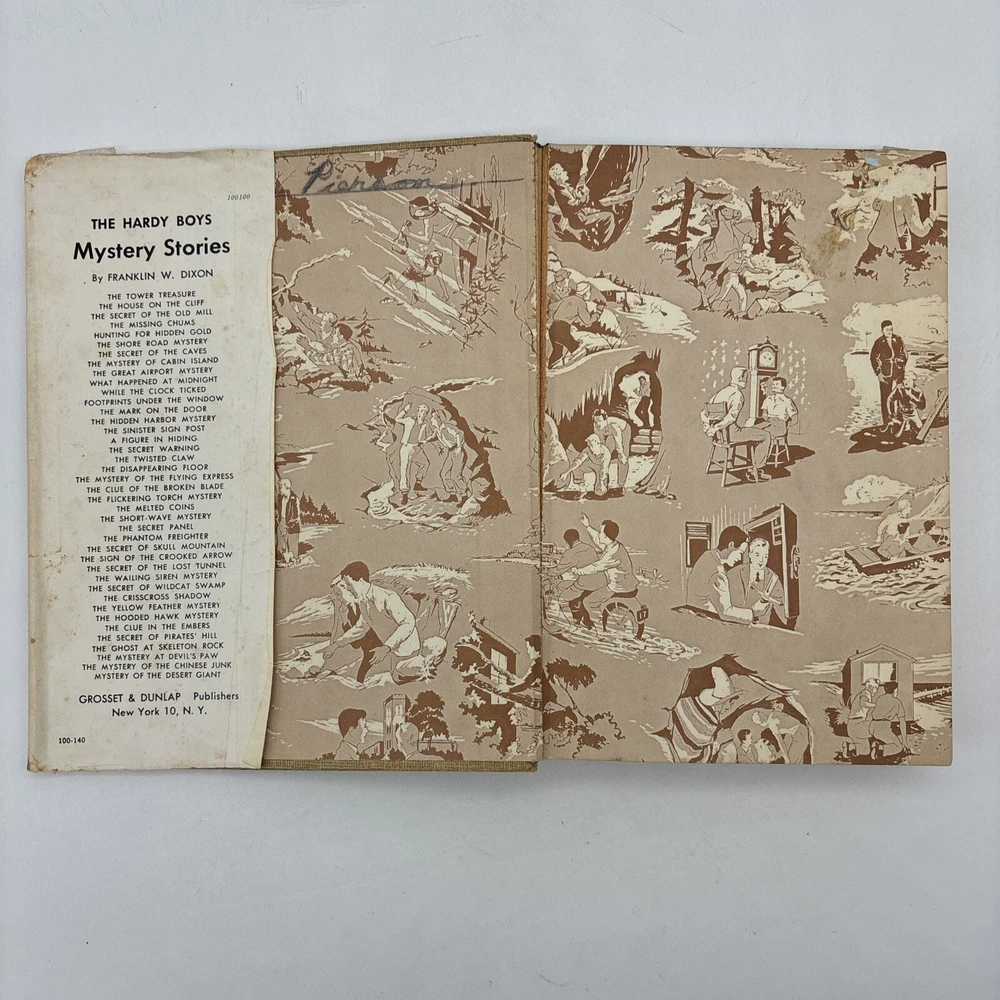 Dust jacket has heavy wear and tear as well as several repairs made with cellophane tape. The book itself is in better condition, but has minor damage to the hinges. There are some pencil marks on the title page, and the previous owners name under the front cover. The edges of the pages have minor discoloration from age. Please see pictures.