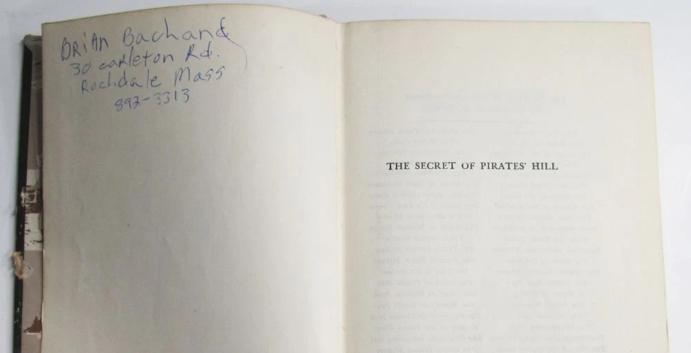 Estimated 1965 edition of the Hardy Boys hardcover book "The Secret Of Pirate's Hill," #36 in the series, good condition overall. Interior list of books ends at Aztec Warrior, list of books on back ends at Haunted Fort, which first came out in 1965. 25 chapters, brown multi endpapers. CONDITION: Good overall, small 1" spine-edge tear at bottom, original owner wrote name and address on first blank page, minor edgewear, minor staining here and there, and minor corner blunting. Decent copy. Hardcover, from Grosset & Dunlap Feel free to ask questions if you have them - we offer discounts on multiple purchases! Ships FAST in a sturdy unmarked thick-padded envelope - no worries! RETURNS : We can accept returns on items that are still in the original condition in which we sent them. We do not accept returns on items that were altered by the buyer. CLICK OR TAP HERE TO SEE ALL THE VINTAGE BOOKS IN OUR EBAY STORE! These items are LONG GONE from stores! CLICK OR TAP HERE to visit our eBay Store and save on shipping with ONE INTERNET STOP! With over 1500 different items to choose from, we have something for every kid on your list (even the big ones)! Buy with confidence from us -- we have over 20 years experience selling on eBay and other venues!