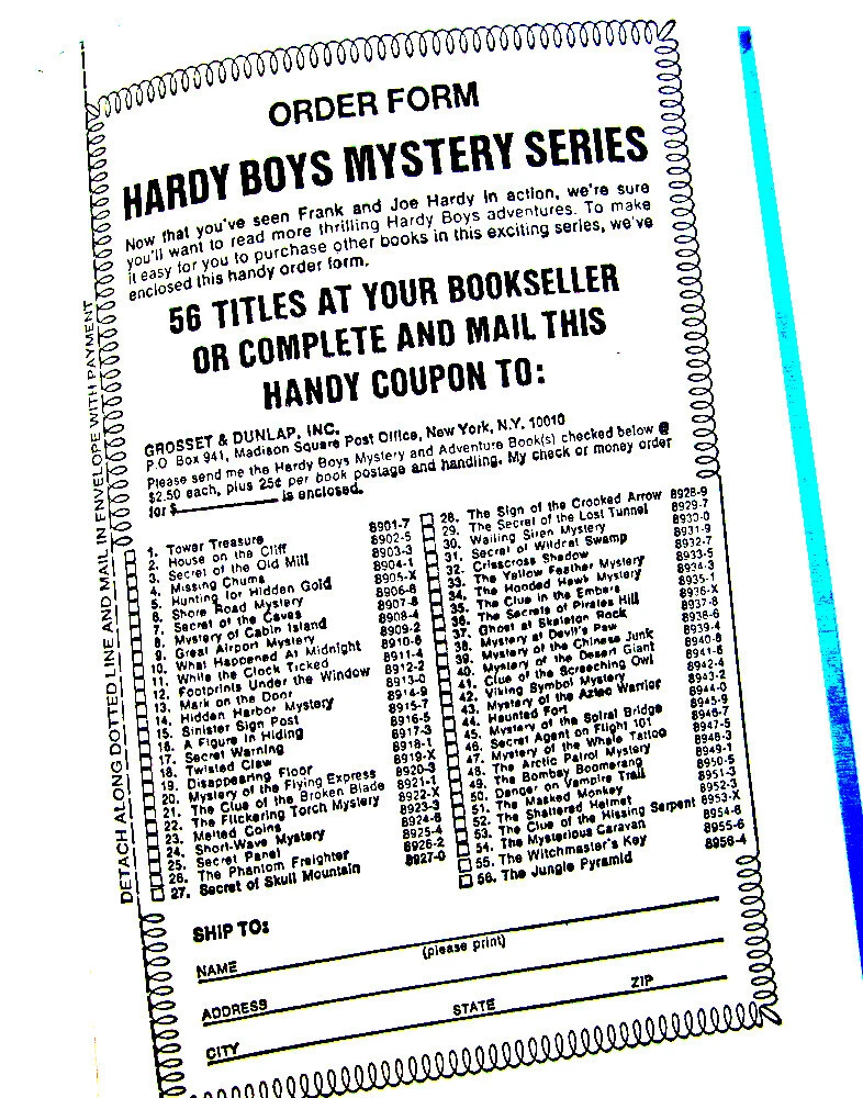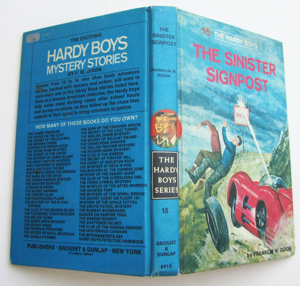 Estimated 1977 edition of the Hardy Boys hardcover book "The Sinister Signpost," #15 in the series, in good condition overall. Hardcover, from Grosset & Dunlap List of books on back ends at "Witchmaster's Key," interior lists to Jungle Pyramid. Endpapers are the 60s/70s black and white multi-scene type. CONDITION: Very nice overall, a few very small stains on front, no writing, minor edgewear. A fine copy. NOTE, we do not have the Carpentieri reference, so if you have questions about specific details, aside from asking for extra pictures, please ask us. Ships FAST in a sturdy unmarked thick-padded envelope - no worries! BUY MORE AND SAVE! If you are buying multiple items, we offer combined shipping for actual ship cost! Simply "Agree to Buy" the items, then choose "Request Invoice from Seller." RETURNS: Accepted if item is still in its originally mailed condition. We do not accept returns on items that have been altered by the buyer. Feel free to ask questions if you have them - we offer discounts on multiple purchases! CLICK OR TAP HERE TO SEE ALL THE HARDY BOYS BOOKS IN OUR EBAY STORE! LOTS of vintage versions! CLICK OR TAP HERE to visit our eBay Store and save on shipping with ONE INTERNET STOP! With over 1500 different items to choose from, we have something for every kid on your list (even the big ones)! Buy with confidence from us -- we have over 20 years experience selling on eBay and other venues!