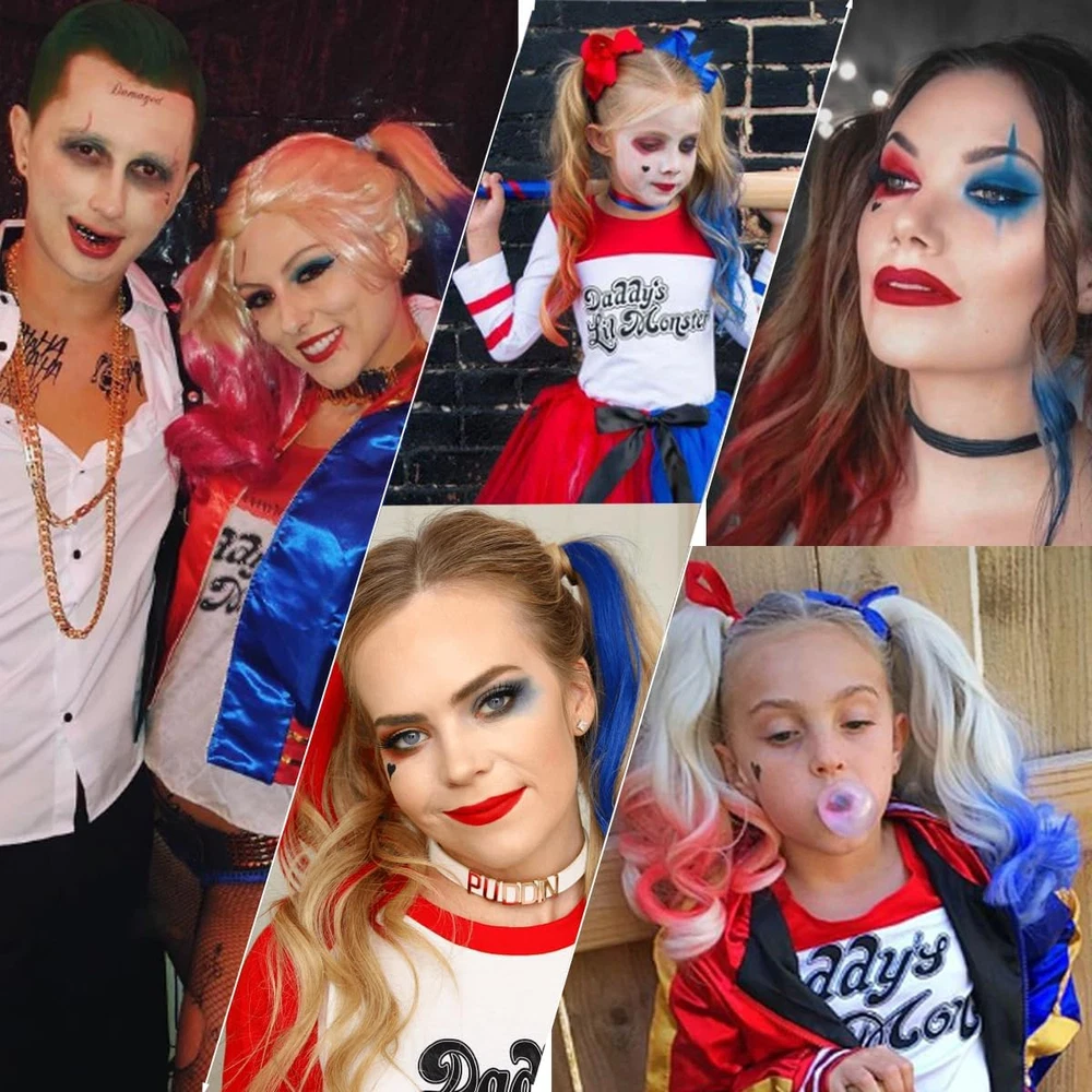 Harley Costume Cosplay Accessories for Women Girls Kids Halloween Makeup, Red an