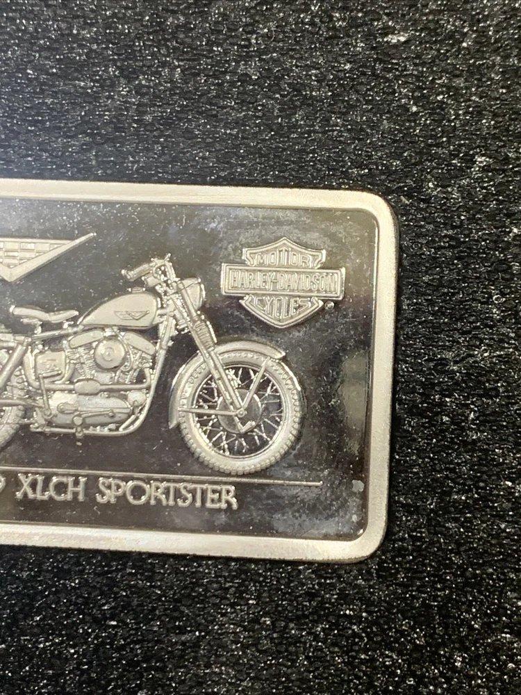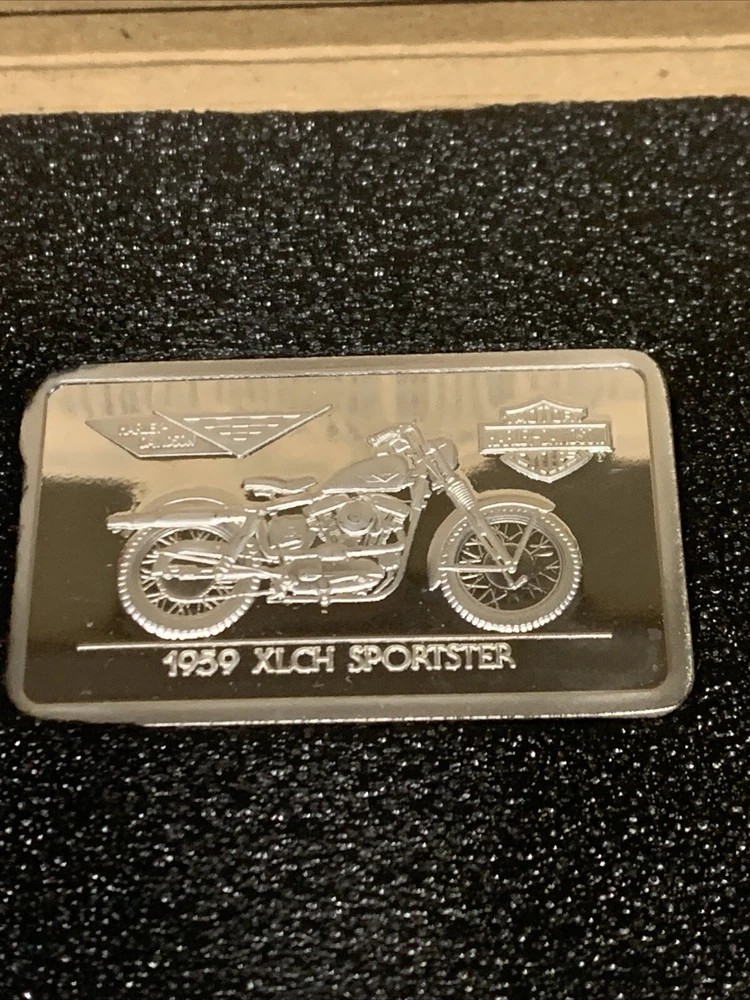 Comes in box/sleeve. Has certificate of authentication. Weighs 1.4 ounces and is .999 fine silver. An official Harley-Davidson Licenses Product. The brown sleeve has some small black & white marks on it. The CoA has some black marks on it. The bar has some scratches on it. Please review all pictures.