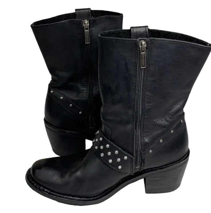 $ 184.78Burberry Womens Leather Saddle High Boots Size 8 Buckle Harness Round Toe Black