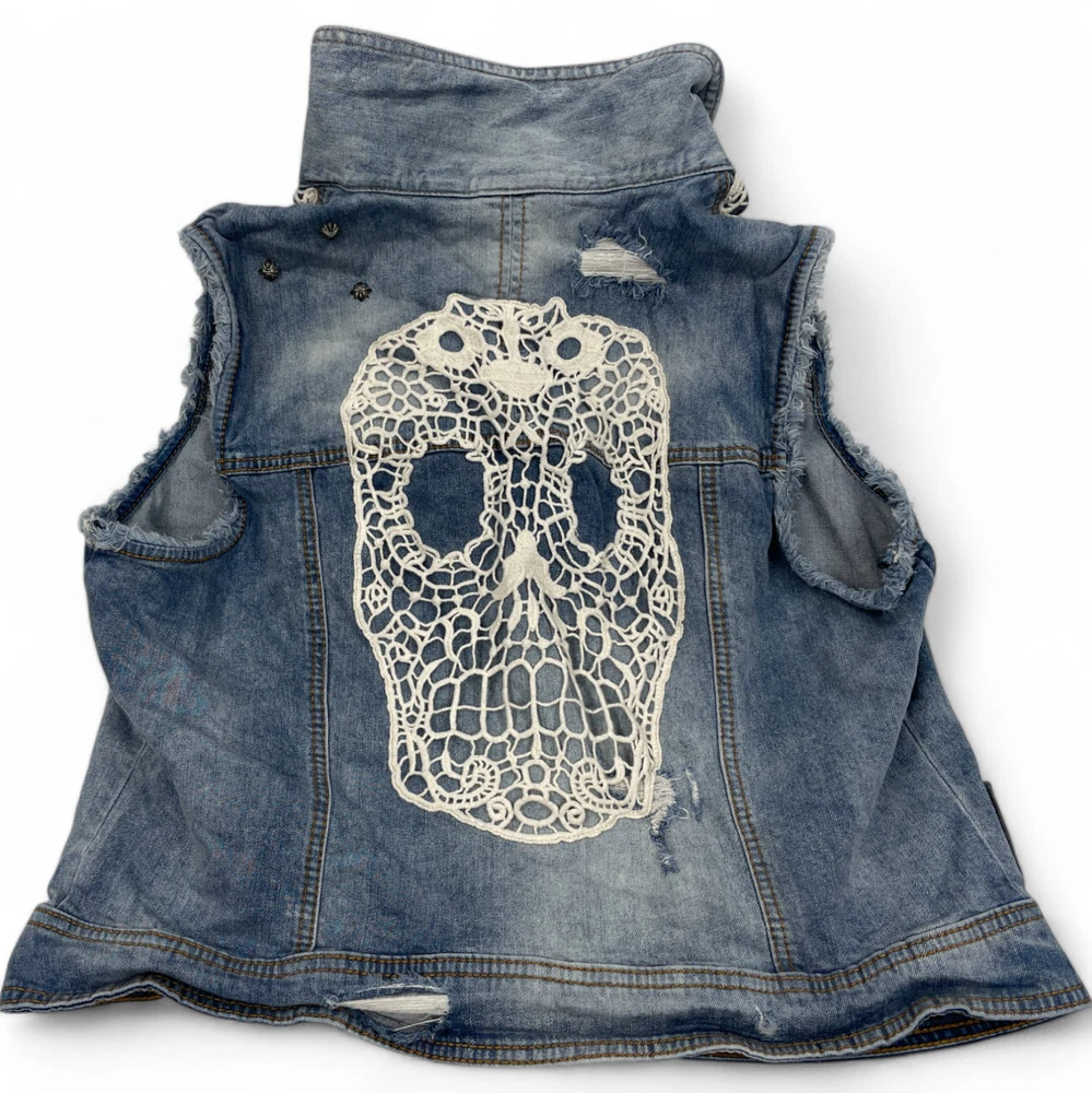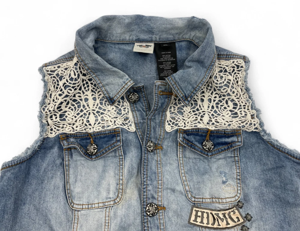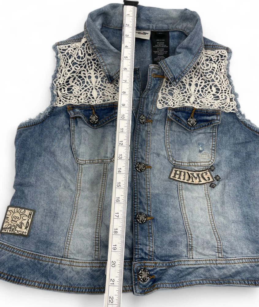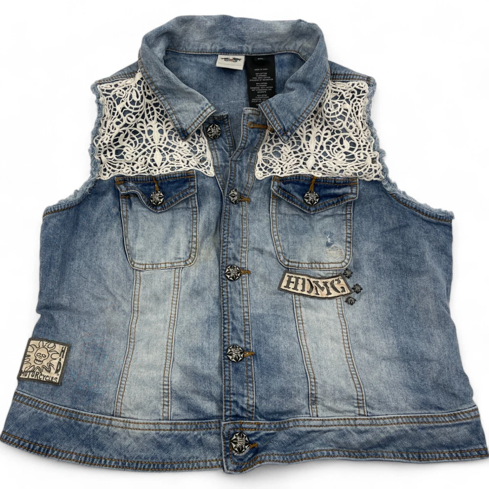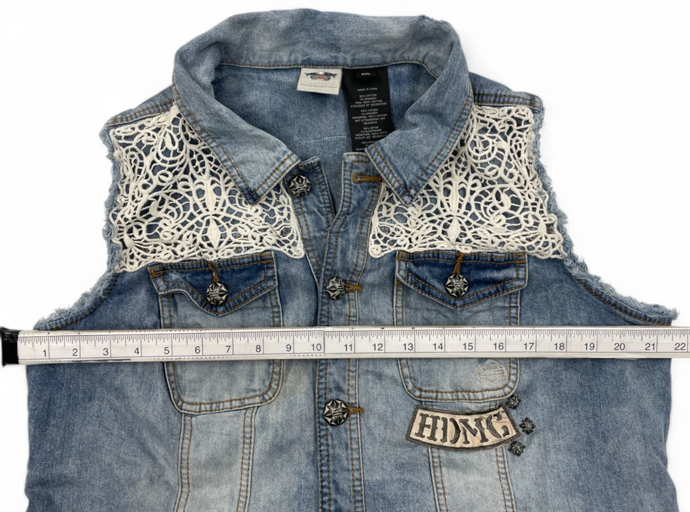 Harley Davidson Skull Patches Denim Biker Motorcycle Vest Jacket Women's 2XL XXL