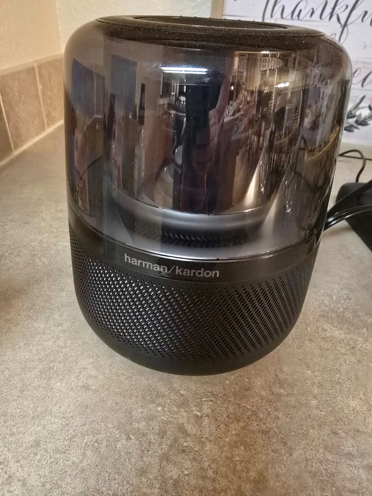 The Harman Kardon Allure is a 4.0 Channel smart speaker with a sleek oval shape, designed for 360° surround sound experience. It is equipped with Bluetooth, Wi-Fi, and USB connectivity, along with voice activation compatibility with Alexa for smart home control. With a metal construction and a power output of 60W, this black speaker also features a one-month manufacturer warranty. The Harman Kardon Allure is a versatile and powerful smart speaker suitable for enhancing your audio experience and integrating with your smart home setup.