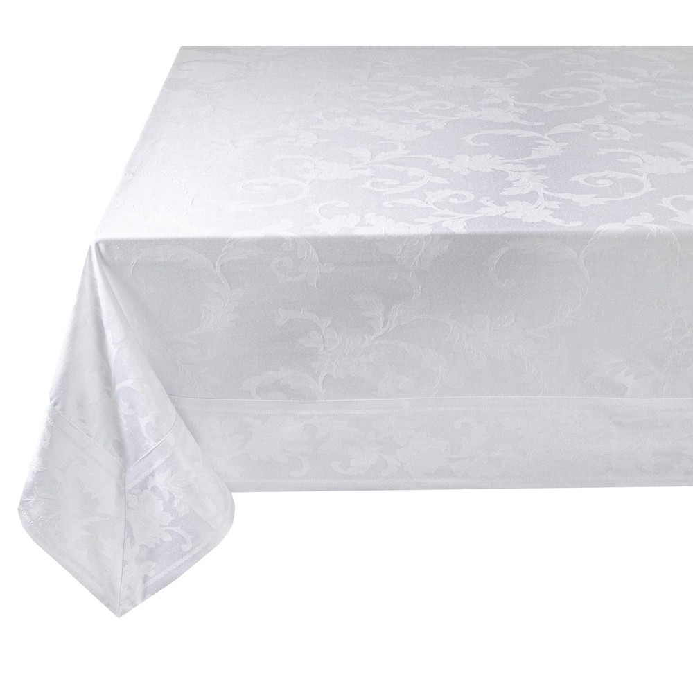 This elegant Italian style heavyweight woven damask tablecloth with a hand assembled mitered border will dress your table to the highest standards of dining in any setting. Whether a casual gathering of friends or a formal dinner, this versatile tablecloth creates a look of elegance and refinement. Fabric Tablecloth with an elegant Damask pattern made of Polyester/Cotton. Heavyweight High-Quality Fabric Table Cloth. Creates a wonderful and luxurious Dining Table Setting for your family and friends to enjoy together. Designed in our New York Studio Fabric Content: 58% Cotton, 42% Polyester. Fabric Napkins sold separately. Features a hand assembled Elegant Mitered Border with an elegant pattern to enhance your Table Décor. Strongly recommended for Casual or Formal Dining. Easy Care Instructions: Machine wash cold. Gentle cycle. Wash dark colors separately. Use non-chlorine bleach only. Tumble dry low. Remove promptly. Lightly iron if necessary. Launders beautifully! Love this tablecloth like many other satisfied customers.