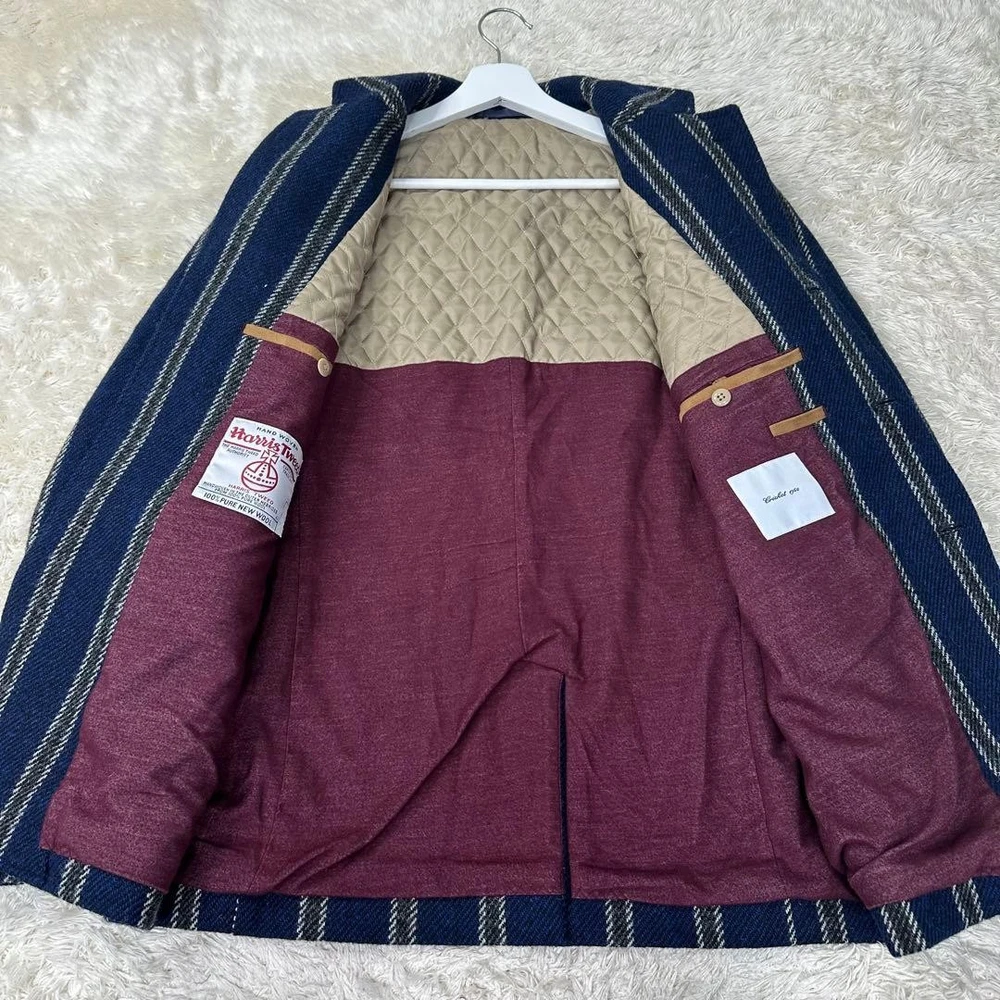 Harris Tweed Cricket 1960 Men's Tailored Stripe Jacket Size 50 Vintage Features - Brand: HARRIS TWEED - Product: Striped jacket, "Cricket 1960" - Material: Outer 100% wool (Harris Tweed certified); lining: polyester/cotton (partial) - Color: Navy × White stripe - Features: Authentic Harris Tweed label, hand‑woven wool, quilted warm interior, practical pockets; suitable for casual or formal autumn/winter wear - Condition: Very clean; used item—minor unnoticed wear possible - Size: Label 50 (equivalent to XL). Measurements (approx): shoulder 45cm, sleeve 62cm, chest 54cm, length 76cm Item Specifics: Brand: HARRIS TWEED Model/Series: Cricket 1960 Type: Jacket Size: 50 (XL) Material: 100% Wool (Harris Tweed) Lining Material: Polyester/Cotton (partial) Color: Navy/White Pattern: Stripe Label: Harris Tweed certified Condition: Used - Very Good Measurements: Shoulder 45cm; Sleeve 62cm; Chest 54cm; Length 76cm Specifications Brand Harris Tweed Country Japan Accents Embroidered, Logo, Zipper Closure Zip Color Multicolors Department Men Features Collared,Pockets Fit Relaxed Garment Care Machine Washable Insulation Material Polyester Occasion Casual, Travel Pattern Solid Season Fall, Spring, Winter Size Type Regular Theme Classic, Motorcycle, USA, Varsity Jacket Type Jacket Description The seller will cover all customs duties for shipments to the United States. For all other countries, customs duties will be paid by the buyer as usual.★If the size is not listed, please be sure to contact us before purchasing. There have been cases where the size did not fit after all, so please make sure it is suitable for you before purchasing. eBay Item Description HARRIS TWEED×Cricket 1960 Tailored Jacket 50 Shipping Using standard shipping (Japan Post, FedEx or DHL), an estimated delivery date will be around 5-14 days after shipment. We send it with your tracking number, so that you can track the delivery status anytime. Shipping is only available to addresses registered on eBay. If you would like to send an item to a different address, please update your shipping address on eBay before you complete your purchase. Company Profile Our store is located in Japan. We will help you to find what you are looking for by searching all over Japan. We know where to look for and provide this service for free, so please feel free to contact us. Payment eBay's recommended payment methods are available. You will be able to pay with credit card, debit card, Apple Pay, Google Pay, or PayPal. International Buyers - Please Note: Import duties, taxes, and charges aren't included in the item price or shipping charges. These charges are the buyer's responsibility. Please check with your country's customs office to determine what these additional costs will be prior to bidding or buying. For US buyers: Items are shipped via DDP (Delivered Duty Paid), so you will not be charged any customs duties.