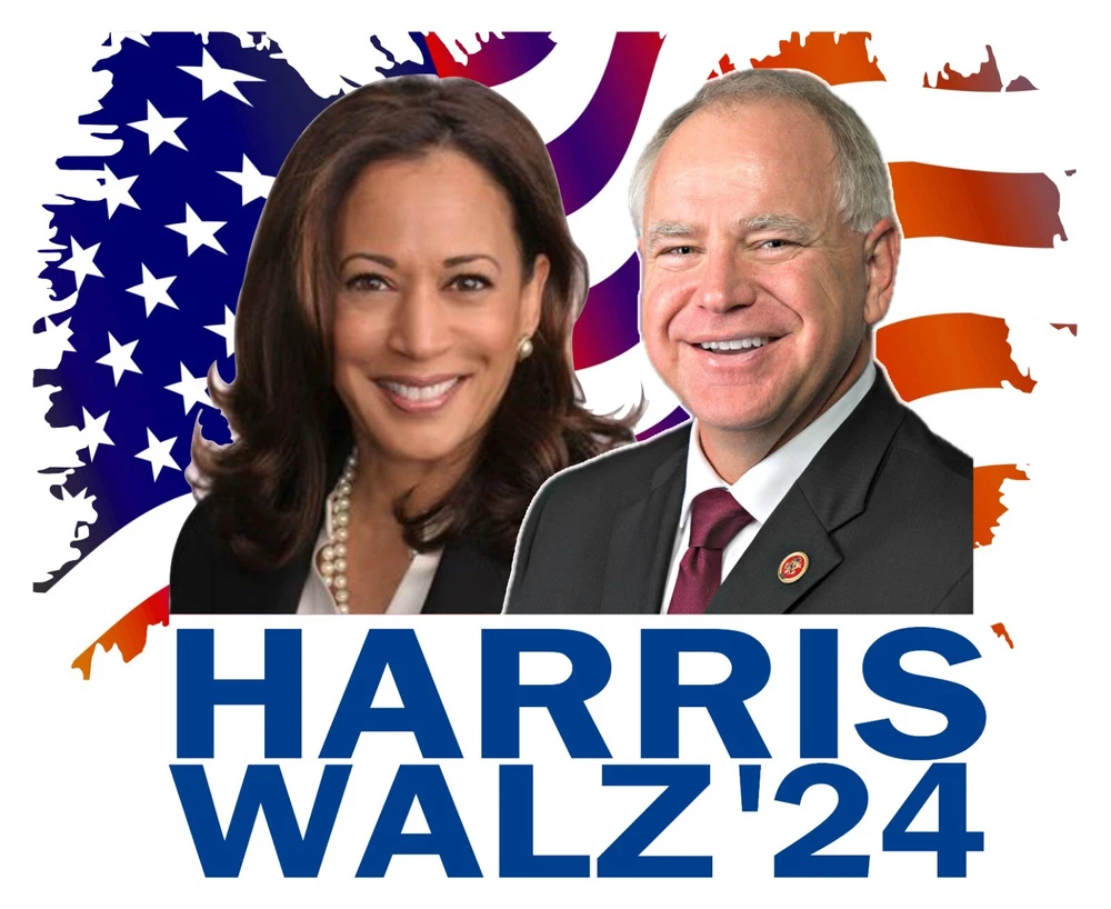 Harris Walz 2024 Picture waving flag Election Yard Sign with Metal H Stake