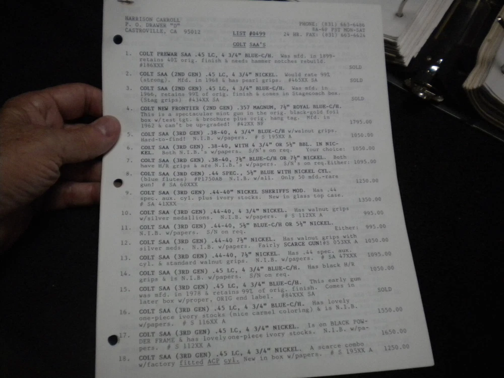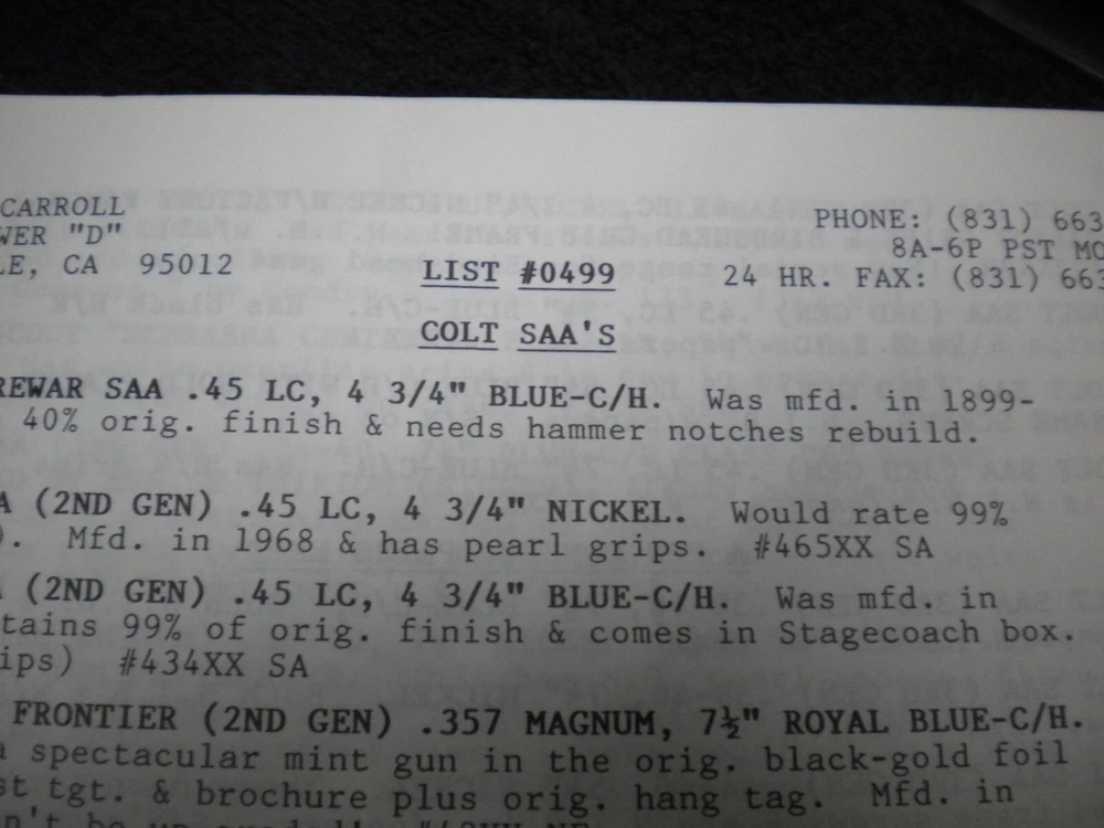 this auction is for a Harrison Carroll List 0499 , Smith & Wesson Early Colt 1878 SAAs & D/A, , Sale List,used good cond, list shows some wear, the last owner had punched holes and had it stored in a notebook with others, see pictures free shipping