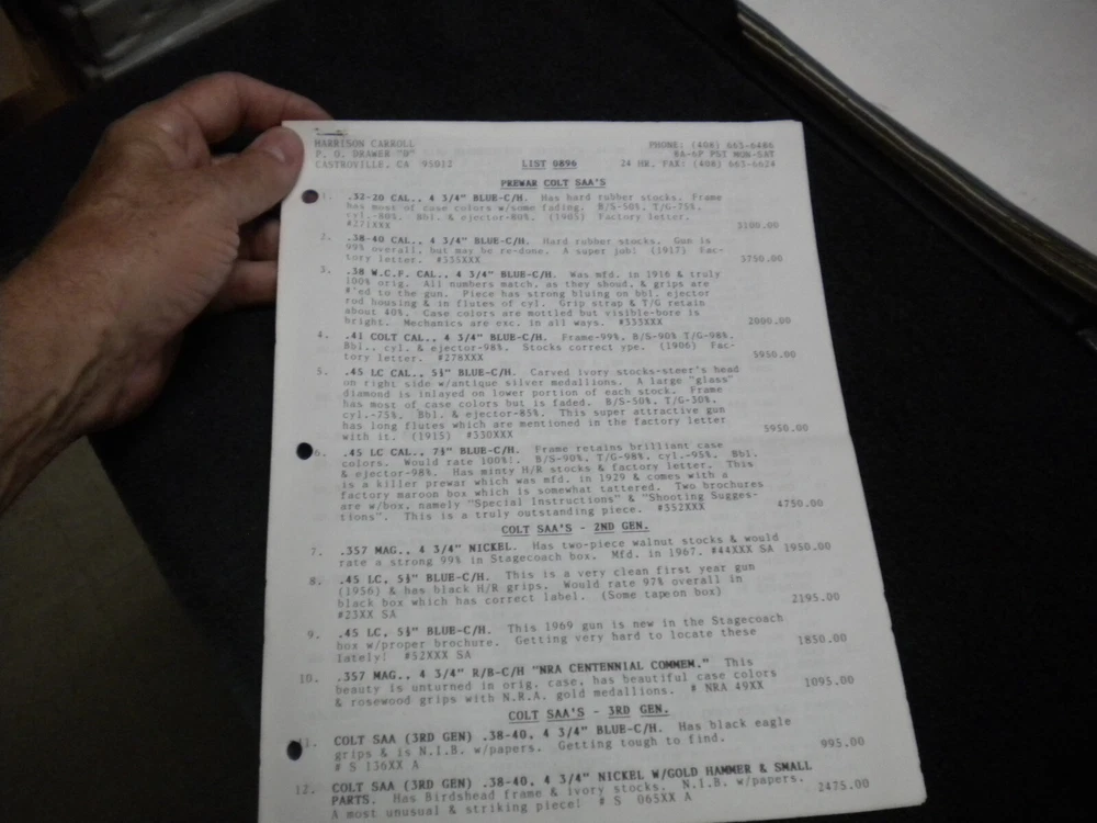 this auction is for a Harrison Carroll List 0896 July 1996 Colt SAAs , S&W , price listused good cond, list shows some wear, the last owner had punched holes and had it stored in a notebook with others, see pictures free shipping