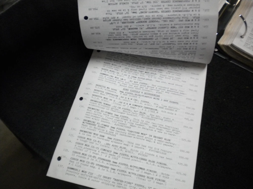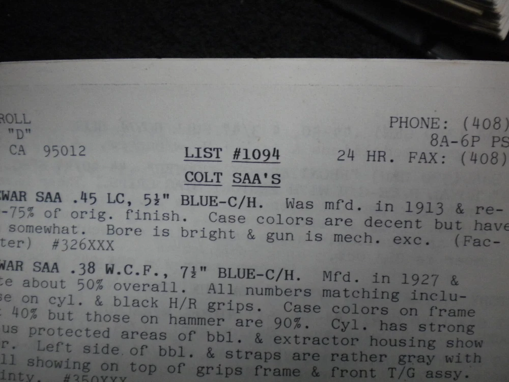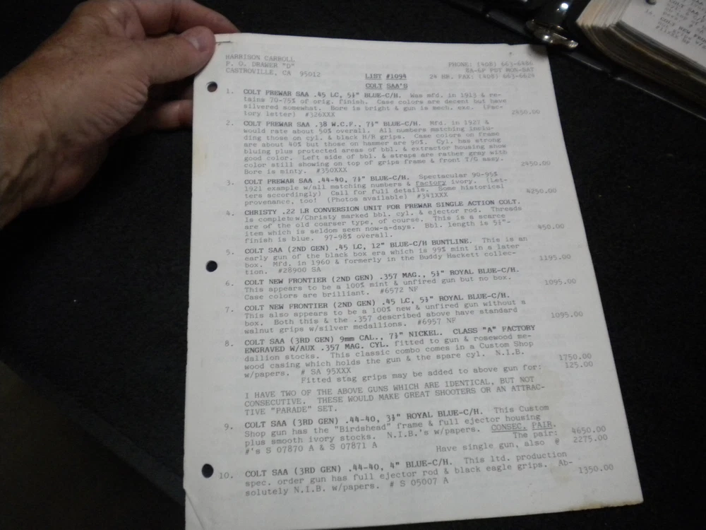 this auction is for aHarrison Carroll List 1094 Sept 1994 Colt SAAs, , S&W, Price List used good cond, list shows some wear, the last owner had punched holes and had it stored in a notebook with others, see pictures free shipping