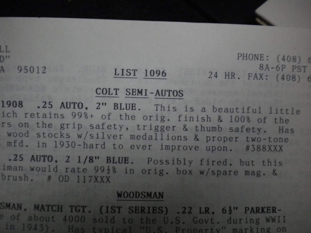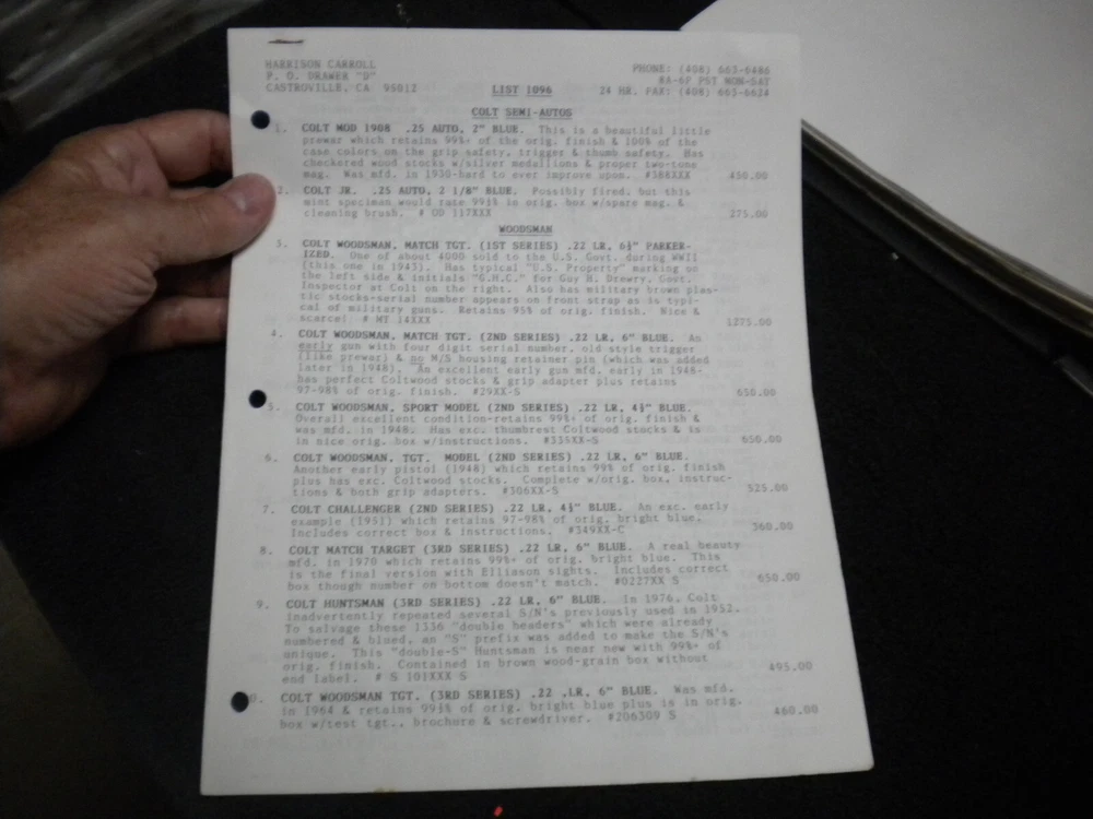 this auction is for a Harrison Carroll List 1096 ,Sept 96 Colt SAAs, euro pistols , S&W, Price List, list shows some wear, the last owner had punched holes and had it stored in a notebook with others, see pictures free shipping