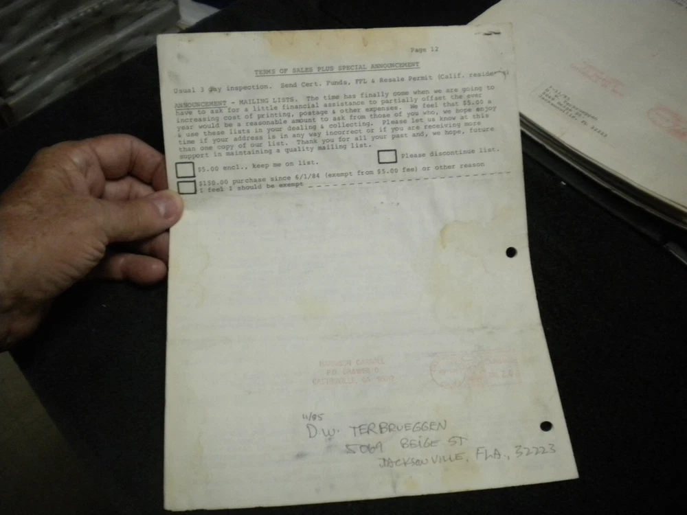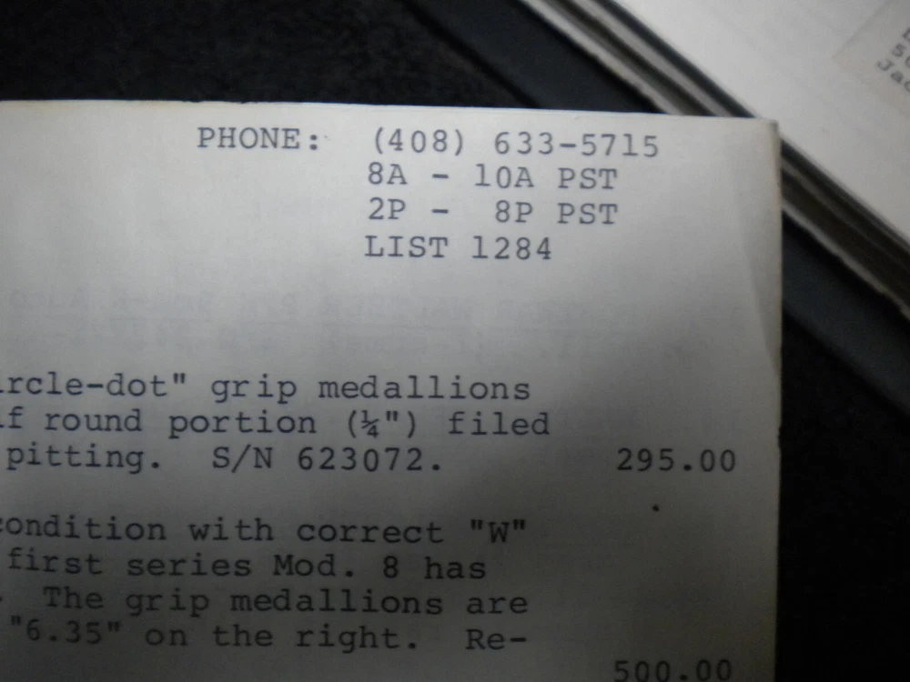this auction is for a Harrison Carroll List 1284 ,Jan , 1985 Colt SAAs, , S&W, Price List shows some wear, the last owner had punched holes and had it stored in a notebook with others, see pictures free shipping