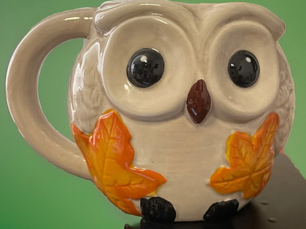 Harry & David OWL MUG, Autumn Leaves Owl (24oz Large, Microwave+Dishwasher)