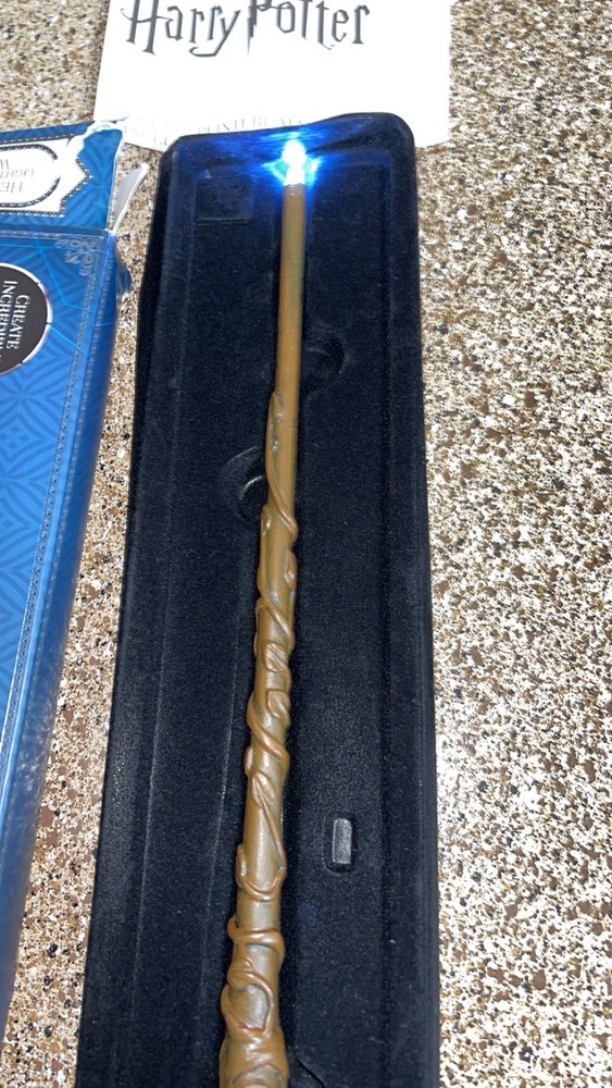 The wand is in great condition. The box has some minor damage. The product is a 14" HERMIONE collectible high grade resin light-up magic wand from the Harry Potter franchise. Produced by WOW & Warner Bros., this wand is a must-have for fans of the fantasy genre. Made in the United States, this officially licensed Harry Potter collectible features intricate details and is a perfect addition to any fan's collection. With its authentic design and functional light-up feature, this wand is sure to delight any Harry Potter enthusiast.