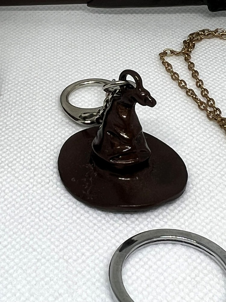 Harry Potter Mixed Lot 6 Items: -Hermione Granger Time Turner Necklace -Sorting Hat Metal Keychain -Golden Snitch With Wood Base (no wings) -9 3/4 Keychain -Keys To The Nimbus 2000 Keychain -Wand Pen Everything in the pictures is included. Items are in like new condition!