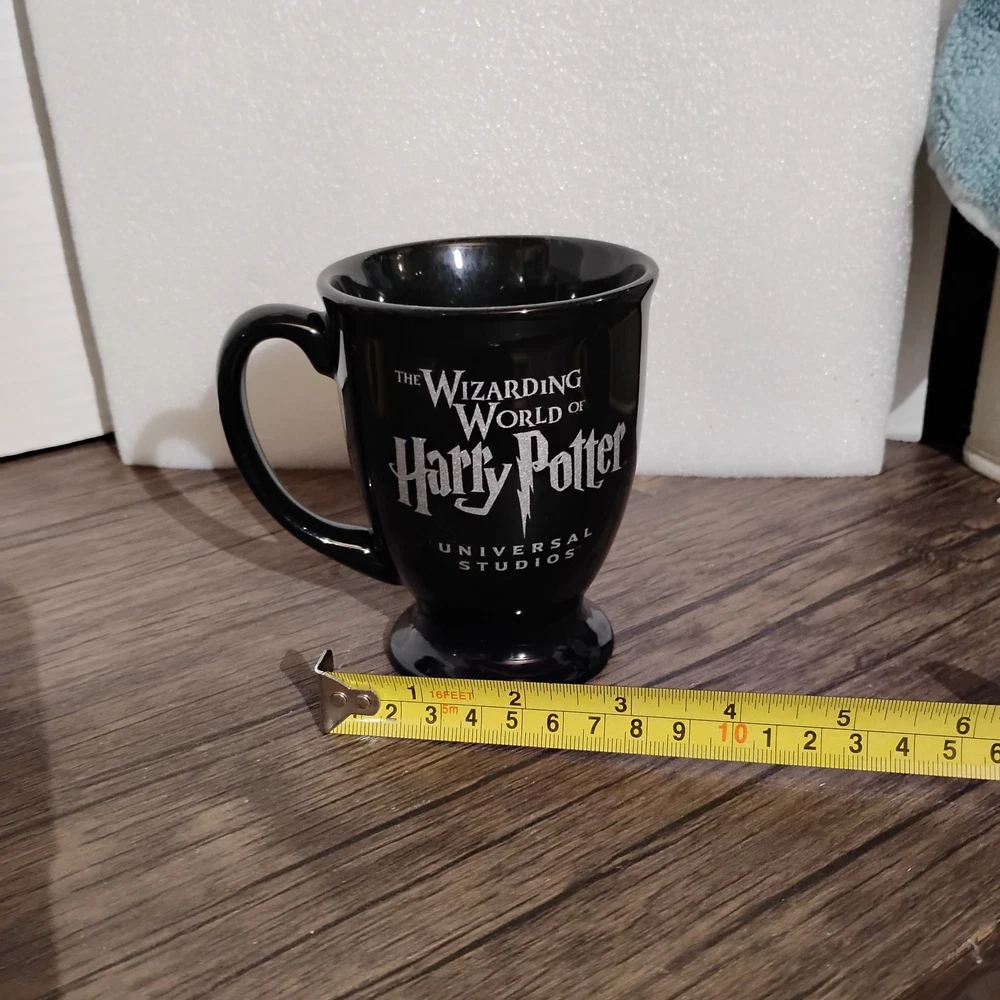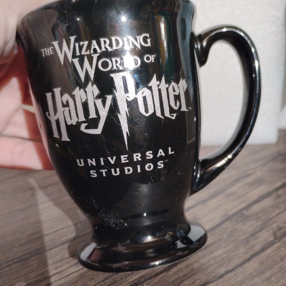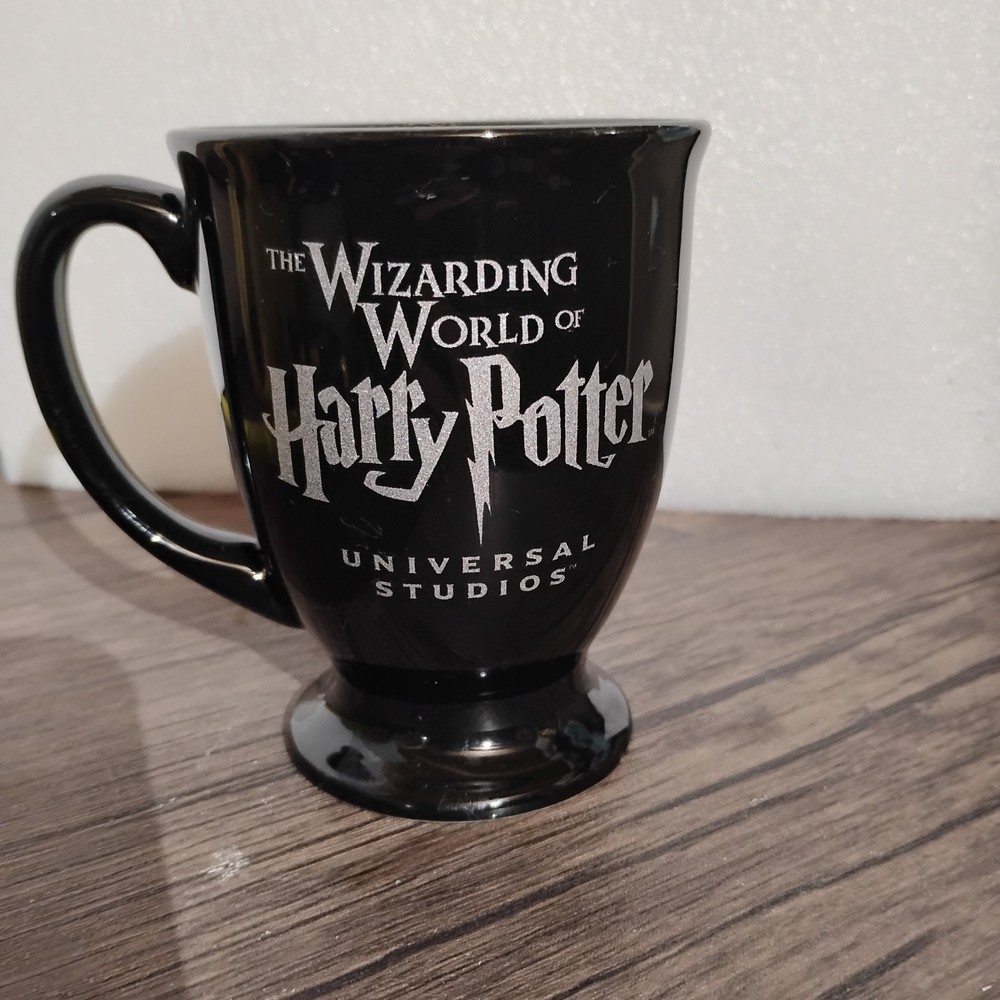 The product is a black Harry Potter mug cup from the Wizarding World of Harry Potter at Universal Studios. It belongs to the Fantasy genre and is part of the Harry Potter franchise. This collectible item is sure to appeal to fans of the magical world created by J.K. Rowling.