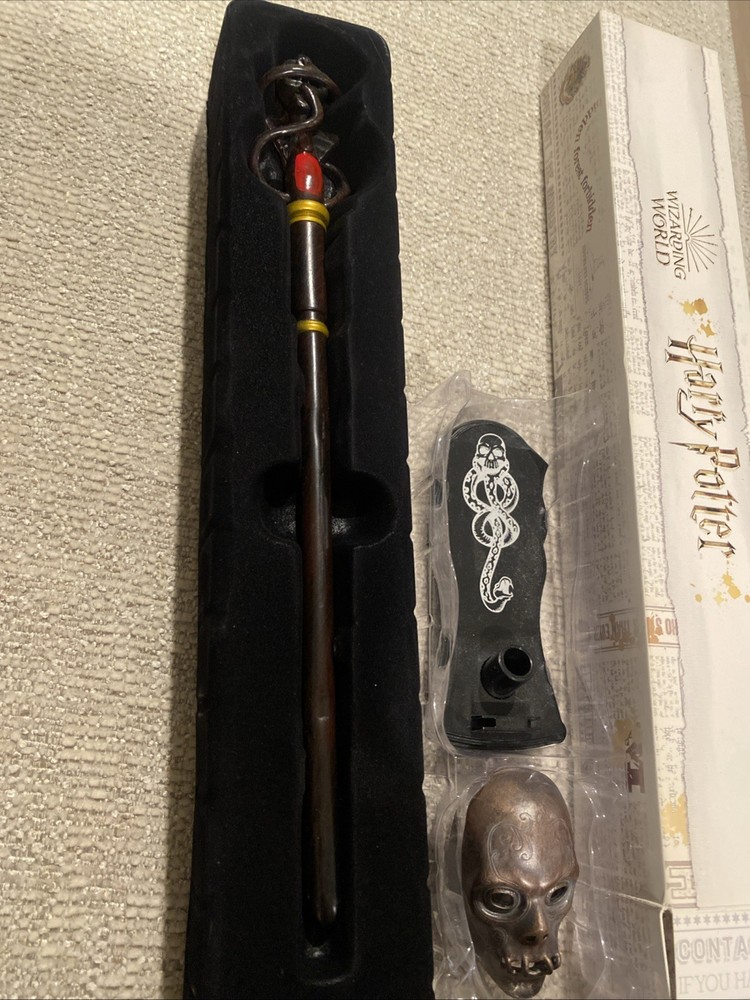 This Harry Potter Mystery Wand is a must-have for any fan of the franchise. This special edition wand, featuring the iconic Death Eaters design, is sure to impress. The intricate swirl pattern adds a unique touch to this collectible item. Crafted by Warner Bros., this wand is a high-quality addition to any Harry Potter collection. Perfect for display or play, this wand is a great gift for any fan of the fantasy genre. Don't miss your chance to own this magical piece of Harry Potter memorabilia.