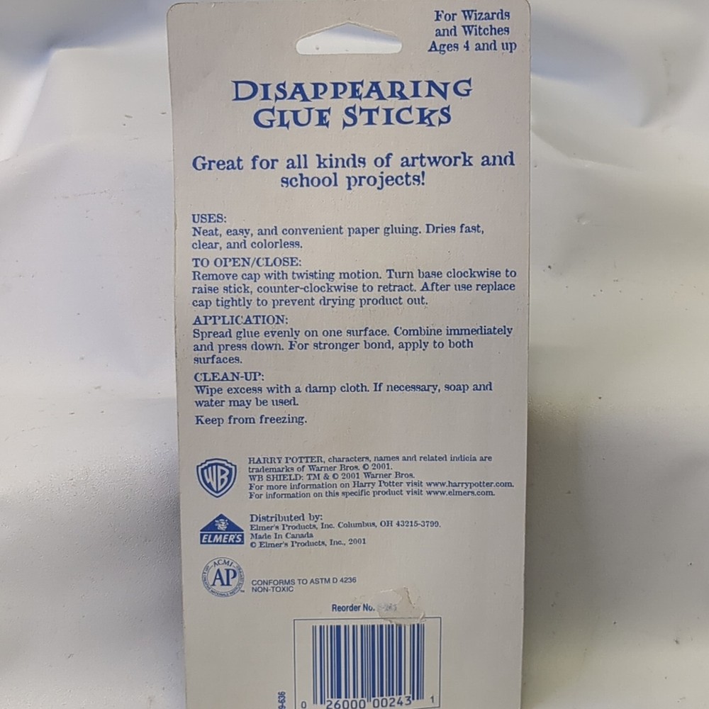 Immerse yourself in the magical world of Harry Potter with this set of 3 disappearing glue sticks from Elmer's. Perfect for children aged 3 and up, these glue sticks are sure to bring a touch of fantasy to any crafting project. Featuring characters from the beloved franchise, including Harry Potter, Hermione Granger, and Ron Weasley, these glue sticks are a must-have for any fan of the series. Use them to create unique and magical creations, or simply add them to your collection of Harry Potter memorabilia. Whether you're a seasoned crafter or a fellow Potterhead, these disappearing glue sticks are sure to bring joy and wonder to your day.