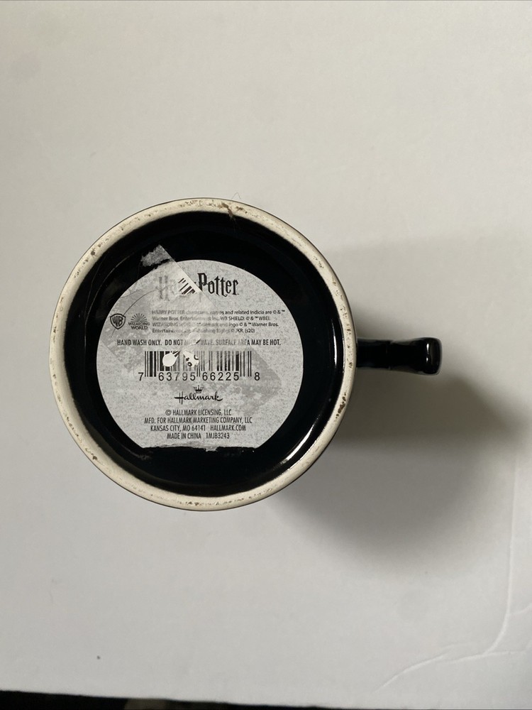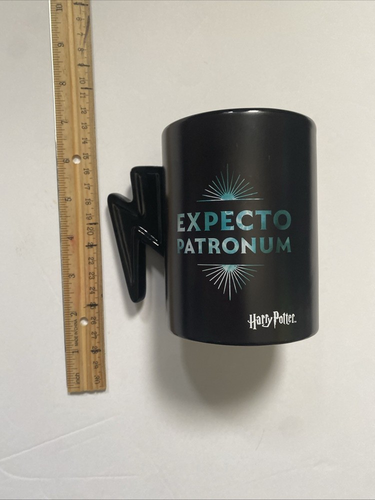 Buyer Note: Fine chips on the handle have been photographed. Mug was never used for drinking, only displaying. Not dishwasher safe. Hand wash only. Enjoy your favorite beverage with this magical Expecto Patronum Harry Potter Ceramic Mug. This mug is perfect for fans of the Harry Potter franchise, featuring the iconic spell in gold lettering. Crafted by Hallmark, this mug is made in China and is the perfect addition to any Harry Potter collection. With its unique design and high-quality materials, this drink ware is sure to impress. Whether you're a collector or just a fan of the wizarding world, this mug is a must-have. Get your hands on this Harry Potter mug today and sip in style!