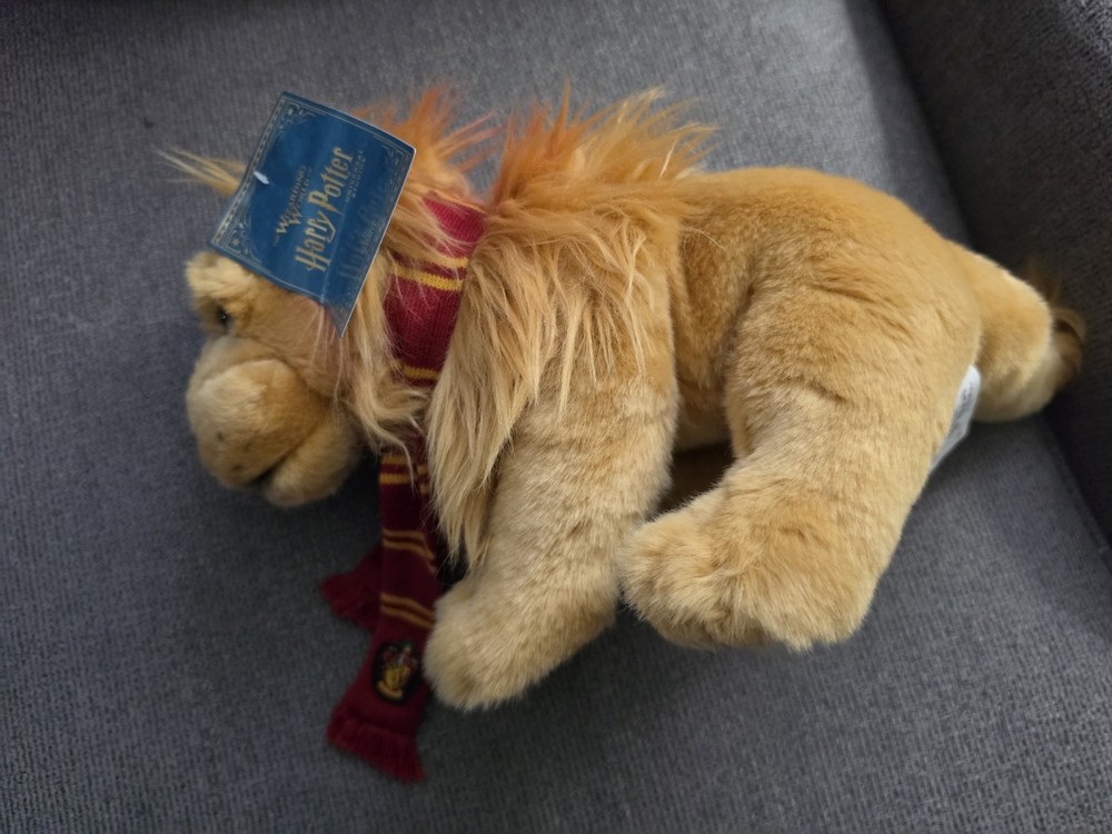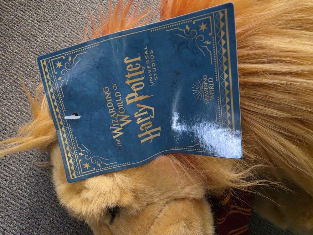 The Harry Potter Gryffindor 12" Plush Lion Scarf from Universal Studios Wizarding World is a charming collectible for fans of the Harry Potter franchise. Produced by Warner Bros., this plush toy features the iconic Gryffindor lion and comes with a scarf, making it a unique and magical addition to any Harry Potter collection. Whether for display or as a cuddly companion, this plush is sure to delight fans of the fantasy genre. condition is new. includes tag. see images